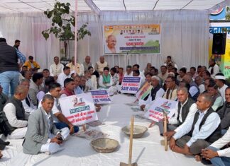 मनरेगा में संशोधनों और नए प्रावधानों के विरोध में धरना
