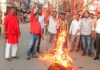 झुंझुनूं में विहिप का उग्र प्रदर्शन: धर्मांतरण व गौ हत्या के खिलाफ फूंका पुतला, गूंजे नारे