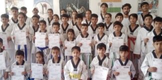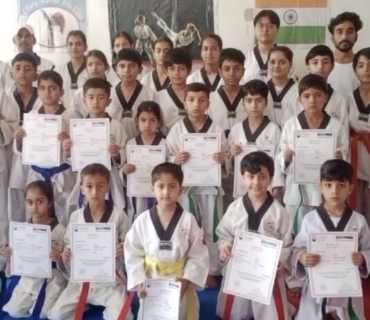 मार्शल आर्ट बेल्ट परीक्षा में 32 खिलाड़ियों ने दिखाई प्रतिभा