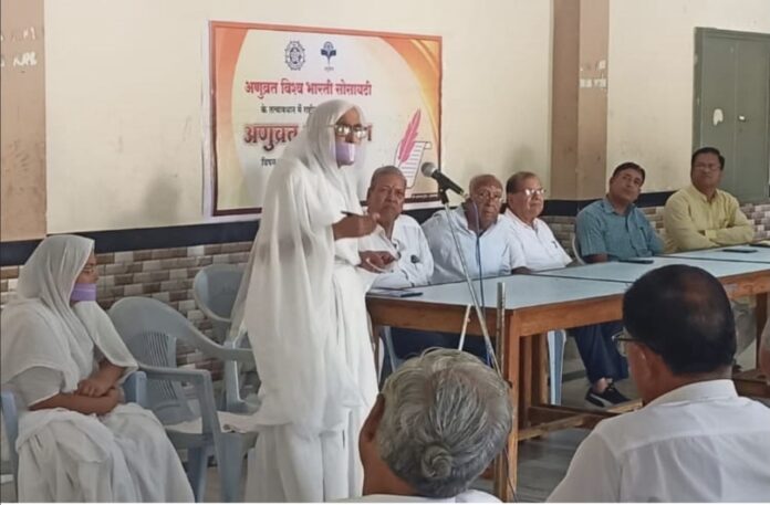 साध्वी श्री संपत्ति प्रभा ने अपना उद्बोधन देते हुए इच्छाओं की पूर्ति के लिए व्यक्ति का गलत मार्ग अपना लेना एक बड़ी कमजोरी बताया और समझाया कि अणुव्रत नियम जीवन को ऐसी कमजोरियों से मुक्त कर उत्कृष्ट बनाने वाले हैं । युवा कवि प्रभात बील ने अपनी कविता के माध्यम से जहां संयम और अनुशासन पर बल दिया वहीं परमेश्वर लाल गौड़ ने श्गणपति के पद प्रणेता, वंदन बारंबार से आचार्य तुलसी की वंदना की। कवयित्री भानुप्रिया शर्मा ने श्कहानी है बड़ी पुरानी , नशा मौत की निशानी सुनाई तथा अशोक वर्मा ने लघु प्रसंग के माध्यम से झूठी वाह – वाही पर करारा व्यंग्य किया । पूर्व शिक्षाधिकारी कुलदीप व्यास ने अणुव्रत गीत के साथ-साथ अपना गीत काया माटी की प्राणी क्यों करता है इसपे गुमान , ये साथ ना देगी…ष्सुनाया वहीं दूसरी ओर श्जनता में जागृति आ जाए बढ़ जाए खुशहाली , फैलायें हरियालीश् के माध्यम से पर्यावरण संरक्षण और व्यसन मुक्ति की बात भी कही । लक्ष्मी सोनी ने गीतकार दिलीप स्वामी के गीत भ्रूण हत्या को स्वर दिए और स्वयं दिलीप स्वामी ने ष्अपनी बेटी गीत ष्सुनाकर श्रोताओं को भाव विभोर कर दिया । जैन श्वेतांबर तेरापंथी सभा के अध्यक्ष मोतीलाल तातेड ने शाब्दिक स्वागत किया। इस अवसर पर सुरेश कुमार मुरारका, लक्ष्य पारीक, चतुर्भुज गोस्वामी, महेंद्र कुमार शर्मा , वासुदेव चाकलान आदि ने अणुव्रत आंदोलन पर अपने विचार प्रकट किये । मनोज चारण ने महाभारत की पृष्ठ भूमि को लेकर रचित गीत कृष्ण बैठे निर्विकार वेदना पिए हुए …… सुनाकर नवचिंतन प्रस्तुत किया। अणुव्रत समिति के उपाध्यक्ष अरुण रामगढ़िया , सहमंत्री नरेंद्र सांकृत्य , कोषाध्यक्ष राजकुमार बैद , संगठन मंत्री रमेश बैद कार्यकारिणी सदस्य वेदप्रकाश चौधरी ,दौलत राम खटीक , बालकृष्ण बील , रामचंद्र पारीक आदि ने आयोजकीय भूमिका निभाई। कार्यक्रम में पं ललित मोहन शास्त्री , रामदेव शर्मा ,जुगराज हीरावत , बाबूलाल कोचर , शंभू दयाल लाटा , लक्ष्मीपत बैद , बद्रीप्रसाद पारीक , विनोदकुमार वर्मा,मांगीलाल स्वामी , नथमल तातेड , वेद प्रकाश पंवार, कमल बैद, विनीत भूतेडिया , जयाकांत बिंवाल, महावीरप्रसाद सेवदा, रघुनाथप्रसाद इंदौरिया, राकेशकुमार नायक, परमेश्वरलाल आत्रेय सहित अन्य गणमान्य नागरिक उपस्थित थे । काव्य गोष्ठी का संचालन युवा कवि मनोज चारण ने किया।