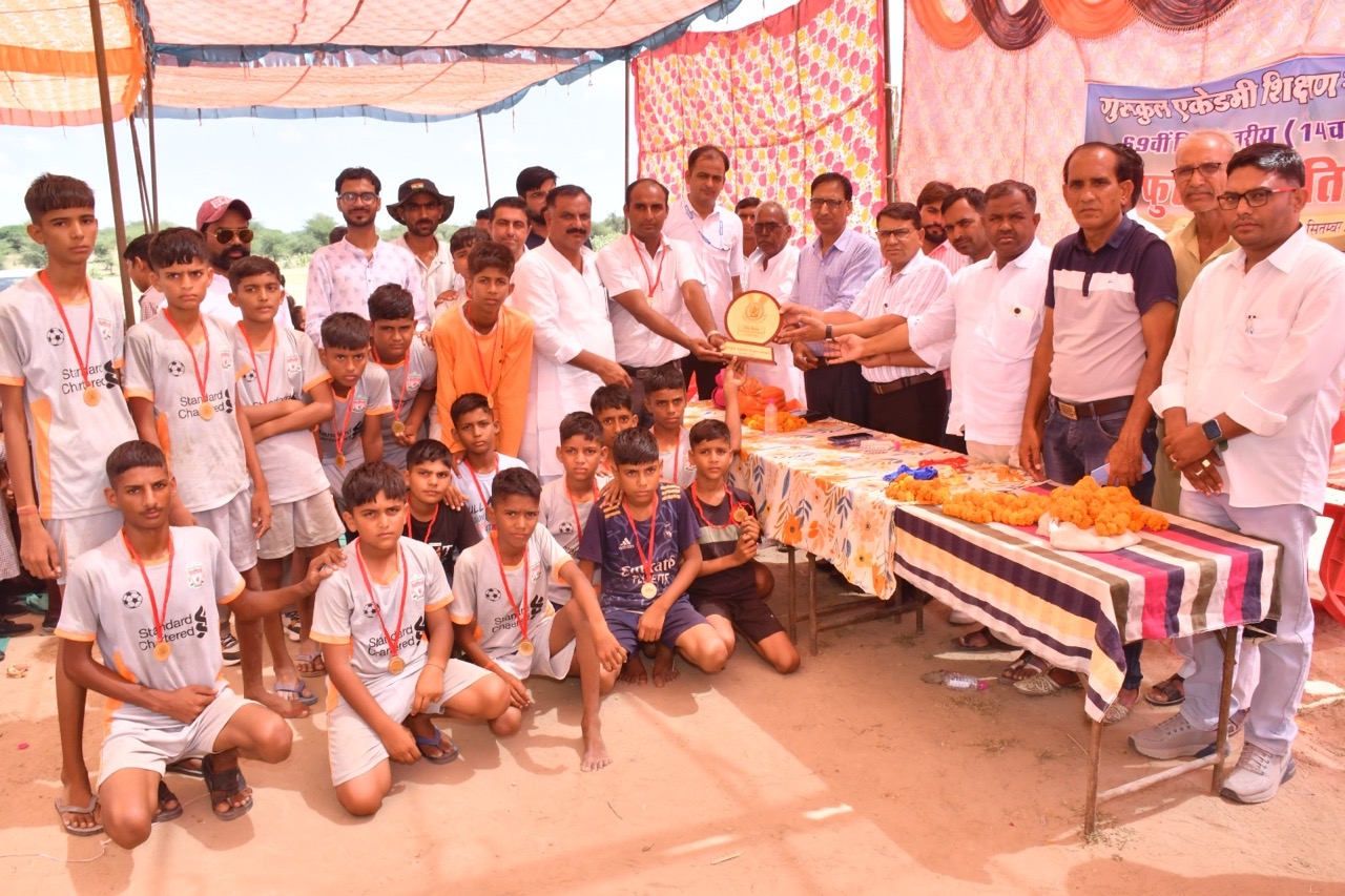 चूरू। ग्राम सोमासी के गुरुकुल एकेडमी में जिला स्तरीय जूनियर वर्ग छात्र-छात्राओं की फुटबॉल प्रतियोगिता का समापन मंगलवार को समारोह पूर्वक सम्पन्न हुआ। कार्यक्रम के मुख्य अतिथि पीसीसी सचिव मुस्ताक खान थे। वहीं एडीईओ नारायण मेघवाल, ब्लॉक शिक्षा अधिकारी भंवर लाल डूडी, गुरुकुल एकेडमी के डायरेक्टर महेश ढूकिया, बीडीसी मेंबर सुनील मेघवाल, चूरू जिला फुटबॉल संघ अध्यक्ष शकील दुर्रानी, सहीराम पूनिया, छात्र नेता प्रीत चांवरिया, फरमान खान, पुलकित चौधरी, प्रधानाचार्य रविन्द्र बेनीवाल, रामकुमार मेहरा, दिनेश पूनिया, पवन पूनिया आदि विशिष्ट अतिथि थे। इस दौरान अतिथियों ने खिलाड़ियों से परिचय प्राप्त कर खेल का षुभारम्भ किया। आयोजकों ने अतिथियों का माल्यार्पण कर स्वागत किया। समापन समारोह को संबोधित करते हुए मुस्ताक खान ने प्रतियोगिता के सफल आयोजन के लिए गुरुकुल एकेडमी के डायरेक्टर महेश ढूकिया व सभी शिक्षकों का आभार व्यक्त किया और विजेता टीमों के सभी खिलाड़ियों को बधाई दी और उप विजेता को भविष्य में ओर अधिक मेहनत कर आगे बढ़ने का आह्वान किया। खान ने कहा कि खेल से व्यक्ति का षारिरीक व मानसिक विकास होता है। प्रतियोगिता में छात्र वर्ग में राजकीय उच्च मध्यमिक विद्यालय आसलसर ने राजकीय उच्च मध्यमिक विद्यालय ख्याली को हराकर खिताब अपने नाम किया। वहीं छात्रा वर्ग में राजकीय बालिका उच्च प्राथमिक विद्यालय आसलसर ने राजकीय बालिका उच्च प्राथमिक विद्यालय आसलखेड़ी को हराकर खिताब पर कब्जा किया। अतिथियों ने विजेता व उपविजेता टीमों को ट्रॉफी व मेडल प्रदान कर सम्मानित किया। कार्यक्रम का संचालन छात्र नेता पुलकित चौधरी ने किया। महेश ढूकिया ने सभी का आभार व्यक्त किया।
