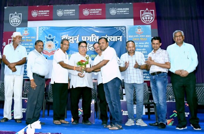 झुंझुनूं प्रगति संस्थान द्वारा सर्वसमाज के लिए फिट इंडिया खेल प्रतियोगिता कार्यक्रम के अंतर्गत झुंझुनूं एकेडमी खेल ग्राउंड पर रविवार को बैडमिंटन प्रतियोगिता का आयोजन संयोजक अशोक केडिया एवं सह संयोजक सीए पवन केडिया के संयोजन में हुआ। जिसमें सिंगल एवं डबल मैच अंडर 17, अंडर 25 एवं 25 से ऊपर उम्र की महिला एवं पुरुष दोनों के लिए किया गया। जिसमें सभी विजेताओं को प्रशस्ति पत्र, मोमेंटो एवं नगद अवॉर्ड प्रथम, द्वितीय एवं तृतीय को क्रमशः सभी वर्गों में 2100, 1500 एवं 1100 रुपए दिए गए। जानकारी देते हुए संस्थान के अध्यक्ष डॉ. दिलीप मोदी एवं सचिव एडवोकेट अशोक शर्मा ने बताया कि कार्यक्रम में रजिस्ट्रेशन के बाद विधिवत रूप से अतिथियों की उपस्थिति में कार्यक्रम का उद्घाटन ड्रॉ निकालने के पश्चात हुआ। पुरस्कार वितरण एवं समापन समारोह मैच समाप्ति के बाद हुआ। बैडमिंटन प्रतियोगिता का सफल संचालन तकनीकी टीम के सोमदत्त वर्मा, राजेश वर्मा, नितेश वर्मा, तनुज वर्मा, हिमांशु दरिया एवं सचिन कुमावत ने किया। प्रतियोगिता के परिणामों में अंडर 17 बालक एकल में आनंद मादेरना प्रथम, डेविड राव द्वितीय, लोकेश गुर्जर तृतीय, अंडर 17 बालक युगल में आनंद—लोकेश प्रथम, डेविड—एकांशु सैनी द्वितीय, वर्धित—वरषित तृतीय, बालिका एकल में द्वेता चौधरी प्रथम, छवि सैनी द्वितीय, दिशिका तृतीय, अंडर 25 बालक एकल में आनंद मादेरना प्रथम, लोकेश गुर्जर द्वितीय, सचिन कुमावत तृतीय, 25 से अधिक में हिमांशु दरिया—सचिन कुमावत, सोमदत्त वर्मा—नितेश, राजेश—विकास तुलस्यान विजेता रहे। संचालन उद्घाटन एवं समापन समारोह में सत्यनारायण शर्मा एवं प्रबंधन जिला बैडमिंटन संघ के सह-सचिव विकास तुलस्यान ने किया। इस अवसर पर झुंझुनूं प्रगति संस्थान के चेयरमैन डॉ. दिलीप मोदी, सचिव अशोक शर्मा एडवोकेट, प्रमोद खंडेलिया, कुरड़ाराम धींवा, योगेश खंडेलिया, डॉ. आशीष अग्रवाल, सीए पवन केडिया, अशोक केडिया, शिवचरण पुरोहित, डॉ. डीएन तुलस्यान, हरिराम महण, पवन पुजारी, डॉ. रविशंकर शर्मा, संजय राणासरिया, सत्यदेव दड़िया, श्रवण केजड़ीवाल, सत्यनारायण शर्मा, विकास तुलस्यान, श्यामसुंदर शर्मा, झुंझुनूं एकेडमी स्टाफ सहित अन्य जन उपस्थित रहे।