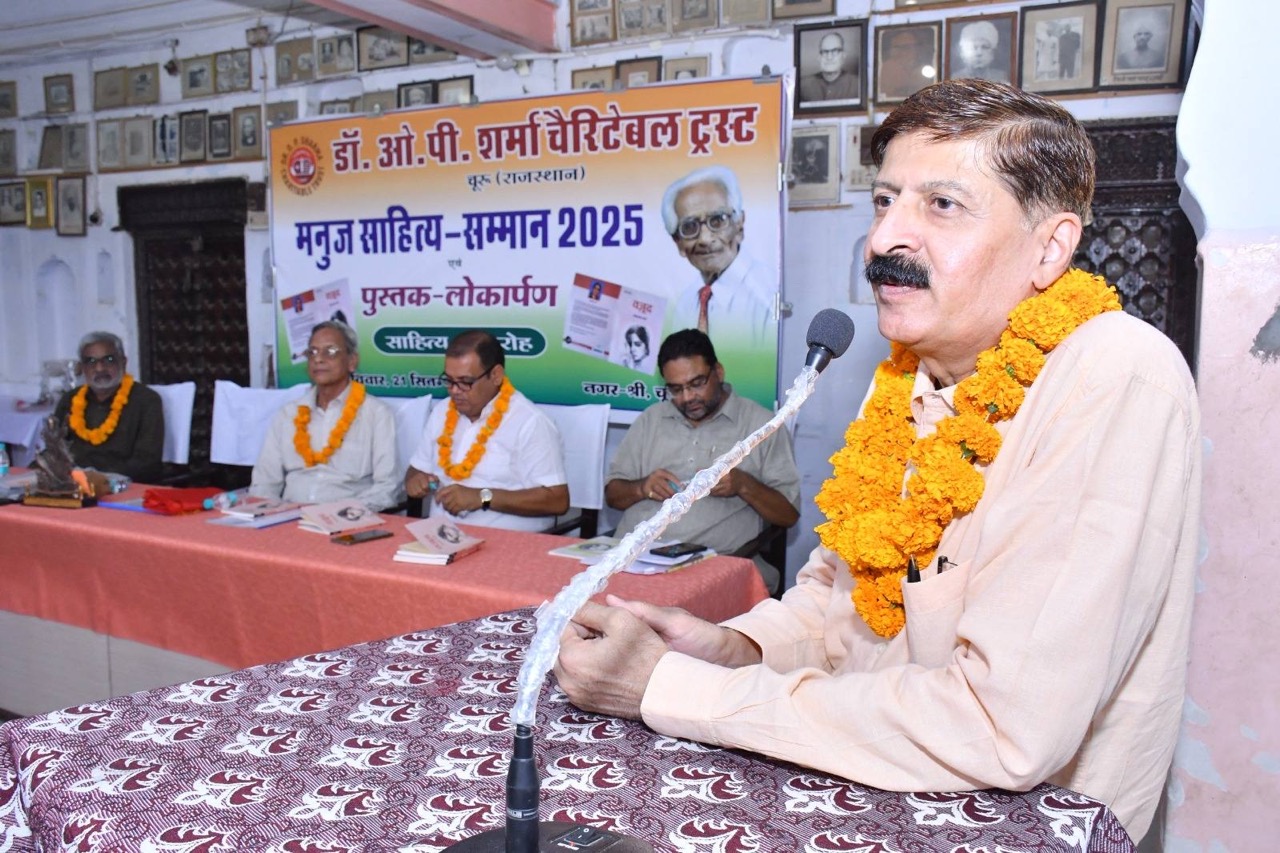 डॉ. ओ.पी. शर्मा चैरिटेबल ट्रस्ट, चूरू की ओर से जोधपुर के डॉ फतेह सिंह भाटी को मनुज साहित्य सम्मान-2025, स्नेहलता शर्मा के कहानी-संग्रह ‘वजूद’ का लोकार्पण, प्रो. कमल कोठारी की अध्यक्षता में हुआ कार्यक्रम