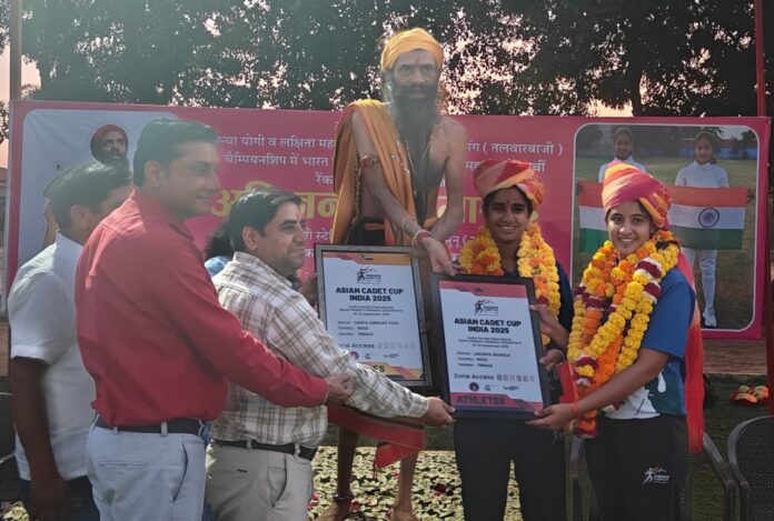 मुकुंदगढ़।हल्द्वानी उत्तराखंड में फेंसिंग एसोसिएशन ऑफ इंडिया द्वारा 19 सितंबर से 22 सितंबर तक आयोजित एशियाई कैडेट फेंसिंग प्रतियोगिता में भारत का प्रतिनिधित्व कर एशिया में 17वीं रैंक हासिल करने पर तान्या योगी और लक्षिता महला का शानदार स्वागत किया गया। योगी स्टेडियम में आयोजित इस अभिनंदन समारोह के मुख्य अतिथि अघोरी बाबा शैलेंद्रनाथ महाराज थे। कार्यक्रम की अध्यक्षता महेंद्र सोलंकी एडीजे झुंझुनूं द्वारा की गई। अतिथियों द्वारा विजेता खिलाड़ियों को माल, साफा और प्रतीक चिह्न देकर सम्मानित किया गया। अपने संबोधन में बाबा अघोरी शैलेंद्र नाथ ने कहा कि खिलाड़ी और खुशी की एक ही राशि होती है। खिलाड़ी न केवल स्वयं खुश रहते हैं। बल्कि अपनी शानदार साधना से देश व समाज को भी खुश रखते हैं। कार्यक्रम के दौरान दोनों खिलाड़ियों के माता-पिता संगीता योगी, सुभाष योगी, मुनेश और मनोज महला का भी स्वागत किया गया। इस अवसर पर हरिभुवनसिंह, पूजा लीला सोलंकी सहित विभिन्न खेलों के कोच और बड़ी संख्या में अभिभावक एवं योगी स्टेडियम के खिलाड़ी उपस्थित थे। कार्यक्रम का संचालन उद्घोषक मूलचंद झाझड़िया द्वारा किया गया।