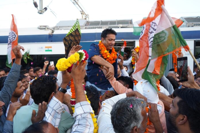 चूरू। बीकानेर से दिल्ली के लिए चलने वाली वंदे भारत ट्रेन के चूरू स्टेशन पहुंचने पर क्षेत्रीय सांसद राहुल कस्वां का कांग्रेस कार्यकर्ताओं द्वारा भव्य स्वागत किया गया। इस मौके पर कार्यकर्ताओं ने उन्हें माला पहनाकर और पारंपरिक साफा ओढ़ाकर सम्मानित किया।कार्यक्रम में उपस्थित जनों ने कहा कि रतनगढ़, चूरू और सादुलपुर में वंदे भारत ट्रेन का ठहराव सुनिश्चित कराना सांसद राहुल कस्वां के निरंतर प्रयासों का परिणाम है। स्थानीय जनता ने इस पहल का स्वागत करते हुए उनके कार्य की सराहना की।इस अवसर पर पीसीसी सचिव रियाजत खान, धर्मेन्द्र बुडानिया, मोहनलाल आर्य, शहर ब्लॉक अध्यक्ष असलम खोखर, देहात अध्यक्ष किशोर धांधू, किसान नेता आदूराम न्यौल, जिला कांग्रेस उपाध्यक्ष जमील चौहान, रमजान खान, अबरार खान, हेमन्त सिहाग, विद्याधर मेघालय, सुनीता कपूरिया, योगेश ढाका, रतनलाल जांगिड़, सोहनलाल मेघवाल, आरिफ पीथींसर, अली मोहम्मद भाटी, सोयल खान डीके, रामनिवास साहारण, अनीश खान, बाबू मंत्री, विमल शर्मा, अज़ीज़ खान, संजय भाटी, आबिद जाबासरिया, शाहरुख खान, जतनलाल मेघालय, शेरखान मलखान, आरिफ रिसालदार, विनोद खटीक, बजरंग बजाड़, असलम खान मोयल, तौफीक खान, समीउल्लाह गोरी, सुशीला सुनंडा, दीपिका सोनी, काज़ी अब्बास समेत बड़ी संख्या में कांग्रेसजन उपस्थित रहे।
