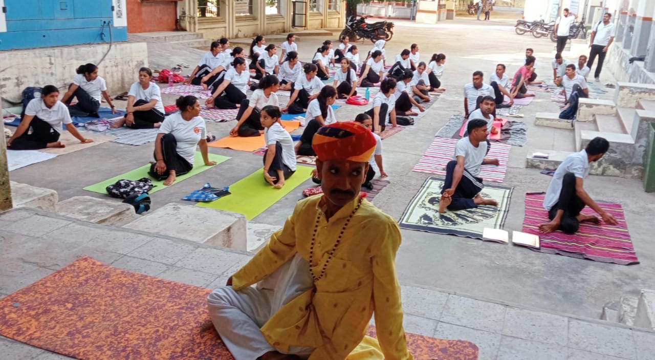 लोहिया कॉलेज में योगाचार्य शंकरलाल सैनी के सानिध्य में विद्यार्थी सीख रहे हैं योग की कलाएं, शिविर में योग विद्यार्थियों ने लिया नशा मुक्ति का संकल्प
