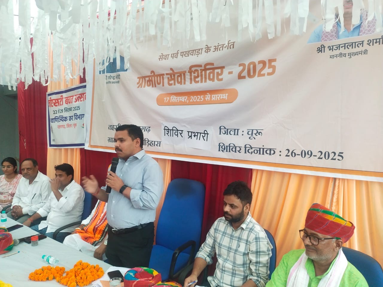 चूरू। जिला कलक्टर अभिषेक सुराणा ने शुक्रवार को जिले की रतनगढ़ पंचायत समिति की पड़िहारा ग्राम पंचायत मुख्यालय पर आयोजित ग्रामीण सेवा शिविर का अवलोकन किया और आमजन की समस्याएं सुनीं। इस अवसर पर उन्होंने कहा कि शिविरों में आने वाले आमजन को योजनाओं की पूर्ण जानकारी दी जाए तथा प्रत्येक पात्र व्यक्ति को समुचित लाभ सुनिश्चित करें। राज्य सरकार द्वारा चलाए जा रहे ग्रामीण सेवा शिविरों का उद्देश्य आमजन को सरकारी योजनाओं का सीधा लाभ पहुंचाना है। हम सभी के समन्वित प्रयासों से सरकार की मंशा साकार हो तथा आमजन को बेहतरीन सुविधाओं का लाभ मिले। उन्होंने मुख्यमंत्री विश्वकर्मा योजना की विस्तृत जानकारी देते हुए बताया कि श्रमिक व कामगार वर्ग प्रतिमाह 100 रुपए आंशिक अंशदान जमा करवाकर 60 वर्ष आयु पूर्ण करने पर प्रतिमाह 3000 हजार रुपए की पेंशन प्राप्त कर सकेंगे। यह योजना प्रत्येक कामगार के लिए अत्यंत उपयोगी है और आर्थिक सुरक्षा सुनिश्चित करने वाली है। शिविर के दौरान जिला कलक्टर ने ग्रामीणों से संवाद कर उनकी समस्याएं जानी और मौके पर ही संबंधित अधिकारियों को समाधान के निर्देश दिए। उन्होंने कहा कि मजबूत विभागीय समन्वय से बेहतर नागरिक सेवाएं उपलब्ध करवाई जाएं। पूर्व विधायक अभिनेष महर्षि ने कहा कि सरकार आपके गांव पहुंची है। इसलिए सभी अधिक से अधिक संख्या में इन शिविरों में भागीदारी करें तथा योजनाओं का लाभ उठाएं। सरकार की मंशा है कि आमजन को बेहतरीन सुविधाएं मिलें और उन्हें योजनाओं की पूर्ण जानकारी के साथ समुचित लाभ एक ही जगह प्राप्त हो, इसलिए इन शिविरों का आयोजन किया जा रहा है। जिला कलक्टर सुराणा, पूर्व विधायक महर्षि सहित जनप्रतिनिधि, अधिकारियों ने शिविर के दौरान 11 लाभार्थियों को स्वामित्व योजना अंतर्गत पट्टे प्रदान किए तथा टीबी मरीजों को पोषण किट प्रदान की। ग्रामीणों ने पानी भराव, बिजली, ग्रेवल सड़क निर्माण, बसों के ठहराव आदि सहित समस्याएं बताई, जिस पर जिला कलक्टर ने संबंधित अधिकारियों को मौके पर ही निर्देशित किया। एसडीएम मिथलेश ने शिविर की व्यवस्थाओं से अवगत करवाया। इस दौरान तहसीलदार पूजा पारीक, बीडीओ जगदीश व्यास, अर्जुन सिंह फ्रांसा, दीनदयाल पारीक, श्योपाल, जगजीत सिंह सहित जनप्रतिनिधि, अधिकारी व आमजन मौजूद रहे।