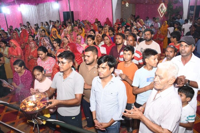 चूरू। वार्ड नंबर 31,32 के ओम कालोनी स्थित शिवालय में ओम शिव समिति द्वारा तीसरा दुर्गा पूजा महोत्सव का आयोजन किया गया । दुर्गा पुजा में महाआरती की गई। दुर्गा पुजा महोत्सव में हनुमान नृत्य की भव्य झांकी सजाई और रावण के बुरे कर्म की सजा के रूप में नाटक का मंचन किया गया। आरती के बाद जागरण का आयोजन किया गया जिसमें सांवरमल एण्ड पार्टी द्वारा एक से बढ़कर एक भजनों की प्रस्तुति दी गई। इस अवसर पर महेश शर्मा, नवीन सैनी, केपी, करण शर्मा, अशोक गुर्जर, राकेश सैनी, नितेश प्रजापत, युवराज, आदित्य शर्मा सहित अनेक महिलाएं व पुरूष उपस्थित थे।