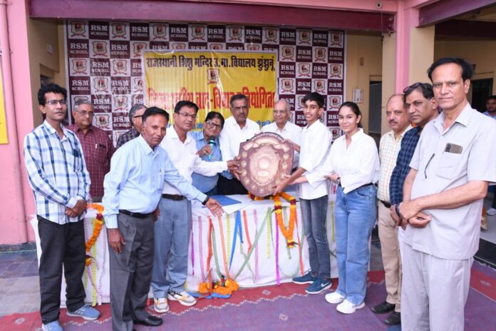 स्थानीय मोदी रोड स्थित राजस्थानी शिशु मंदिर के 50वें वार्षिकोत्सव स्वर्ण जयंती समारोह में दूसरे दिन प्रथम विधानसभा अध्यक्ष स्व. पंडित नरोत्तमलाल जोशी की स्मृति में उनके पुत्र डॉ. विनोदशंकर जोशी के सौजन्य से जिला स्तरीय वाद विवाद प्रतियोगिता का आयोजन किया गया एवं प्रथम दिन आयोजित विभिन्न जिला स्तरीय प्रतियोगिताओं में प्रथम एवं द्वितीय स्थान प्राप्त करने वाली संस्थाओं को सम्मानित एवं बच्चों को पुरस्कार प्रदान किए गए। निदेशक विवेक शर्मा ने बताया कि स्वर्ण जयंती समारोह में दूसरे दिन आयोजित जिला स्तरीय वाद विवाद प्रतियोगिता में चावो दादी विद्या कुंज ने प्रथम स्थान प्राप्त कर चल वैजयंती प्राप्त की तथा जीबी मोदी स्कूल दूसरे स्थान पर रही। कार्यक्रम में मुख्य अतिथि पूर्व स्टेट कमिश्नर स्काउट मान महेंद्रसिंह भाटी थे। अध्यक्षता डॉ. एलके शर्मा ने की। डॉ. महेश माटोलिया, डॉ. जितेंद्र स्वामी, एडवोकेट अनुपम शर्मा ने निर्णायक की भूमिका निभाई। सभी प्रतिभागियों को प्रोत्साहन पुरस्कार प्रदान किए गए। संस्था अध्यक्ष डॉ. उम्मेदसिंह शेखावत ने सभी का आधार व्यक्त किया। इस अवसर पर सचिव सज्जन कुमार शर्मा, प्रधानाचार्य सुरेंद्र कुमार शर्मा, जयप्रकाश शर्मा, प्रियंका शर्मा, श्रुति शर्मा, सुशील सोनी, राजेश शर्मा, धनन्जय श्रीवास्तव, अशोक वर्मा, पंकज शर्मा, कविता प्रजापत, योगेंद्र शर्मा अभिभावक एवं अनेक गणमान्य उपस्थित रहे। कार्यक्रम का संचालन कमलेश शर्मा ने किया।