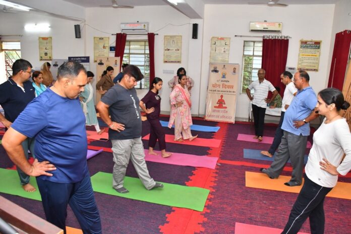 चूरू। लायन्स कल्ब इंटरनेशनल के निर्देशानुसार लायंस कल्ब समर्पण की ओर से चल रहे सेवा सप्ताह के अंतर्गत योग और ध्यान के माध्यम से तनाव व चिंता से मुक्ति विषय पर क्लब के सभी सदस्यों ने रविवार को प्रातः जिला योग एवं प्राकृतिक चिकित्सा केंद्र में योग-प्राणायाम कर स्वस्थ रहने का संदेश दिया। इस अवसर पर प्रांतीय सचिव लायन डॉ. कमल वशिष्ठ ने कहा कि आज इस भागदौड़ भरी जीवन शैली में योग और ध्यान बहुत जरूरी है। यह एक ऐसा माध्यम है जो हमें मानसिक शांति, आत्मबल और निरोगी काया प्रदान कर सकता है। नियमित योगाभ्यास से तनाव और चिंता स्वतः ही दूर होकर जीवन में संतुलन आता है। केंद्र प्रभारी डॉ. संतरा जाट ने योग-प्राणायाम का अभ्यास कराते हुए कहा कि लायन्स क्लब मानवता के समग्र कल्याण हेतु कार्यरत है। योग-ध्यान जैसी गतिविधियाँ हमें न केवल स्वस्थ बनाए रखती हैं, बल्कि समाज को भी सकारात्मक दिशा प्रदान करती हैं। क्लब सचिव लायन पुनीत क्याल ने कहा कि आज के बदलते परिवेश में प्रत्येक व्यक्ति को स्वास्थ्य के प्रति सजग रहना आवश्यक है। योग-प्राणायाम शरीर, मन और आत्मा तीनों का समुचित विकास करता है। यह आयोजन हम सभी को प्रेरणा देता है कि हम स्वयं भी योग अपनाएं और समाज में लोगों को जागरूक करें। योगाभ्यास में लायन मंगतूराम तंवर, राजेन्द्र मुसाफ़िर, डॉ. अक्षय शर्मा, डॉ. सुमित शर्मा, आलोक गुप्ता, राजकुमार शर्मा, अजय शर्मा, सीमा वशिष्ठ, अनसुईया शर्मा, रेखा बजाज, सरला शर्मा, सविता गुप्ता, नीति शर्मा, देवकी शर्मा, अंजु शर्मा, कृष्णा अग्रवाल, सावित्री शर्मा आदि उपस्थित थे।