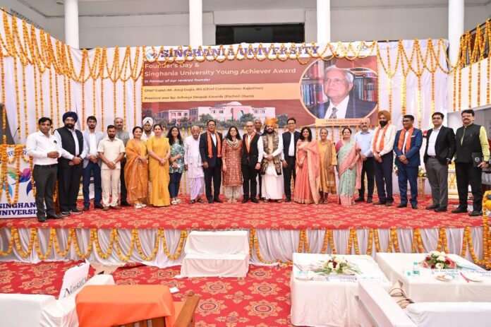 राजस्थान—हरियाणा बॉर्डर पर पचेरी कलां में स्थित सिंघानिया विश्वविद्यालय छात्रों के लिए उन्नत शिक्षा का सशक्त केंद्र बन चुका है और यह युवाओं के सपनों को साकार करने की दिशा में एक महत्वपूर्ण भूमिका निभा रहा है। सिंघानिया विश्वविद्यालय के विद्यार्थी आज हर क्षेत्र में अपनी प्रतिभा का परचम लहरा रहे हैं, चाहे वह खेलकूद हो, सांस्कृतिक गतिविधियां हो या फिर शैक्षणिक व प्रशासनिक क्षेत्रों में उत्कृष्टता की बात हो। यह देखना अत्यंत सराहनीय है कि विश्वविद्यालय ने अब तक जिस गति और गुणवत्ता का परिचय दिया है, उसे निरंतर बनाए रखा है। यह बात कार्यक्रम के मुख्य अतिथि जीएसटी आयुक्त राजस्थान अनुज गोगिया ने कही। सिंघानिया विश्वविद्यालय पचेरी बड़ी में विश्वविद्यालय के संस्थापक दिवंगत डीसी सिंघानिया के जन्मदिन के उपलक्ष्य में संस्थापक दिवस समारोह बड़े ही हर्ष, उत्साह और गरिमा के साथ आयोजित किया गया। यह कार्यक्रम उनकी प्रेरणादायक विचारधारा, शिक्षा के प्रति समर्पण और समाजसेवा की भावना को समर्पित रहा। समारोह का शुभारंभ विशिष्ट अतिथियों द्वारा पौधारोपण के माध्यम से पर्यावरण संरक्षण का संदेश देते हुए किया गया। जिसके पश्चात सरस्वती वंदना और दीप प्रज्ज्वलन के साथ कार्यक्रम का औपचारिक आरंभ हुआ। विश्वविद्यालय के अध्यक्ष डॉ. मनोज कुमार रिटायर्ड आईएएस ने अपने स्वागत भाषण में डीसी सिंघानिया की उपलब्धियों, उत्कृष्ट शैक्षणिक दृष्टि और विश्वविद्यालय की प्रगतिशील शैक्षणिक सुविधाओं पर प्रकाश डाला। समारोह में विशिष्ट अतिथि के रूप में उपस्थित रंधीर यादव और श्रवण केजड़ीवाल ट्रस्टी एवं सचिव महाराजा अग्रसेन शिक्षा एवं जनकल्याण ट्रस्ट झुंझुनूं, राजकुमार यादव चेयरमैन राजस्थान ग्रुप ऑफ एजुकेशन, पचेरी के पूर्व सरपंच ओमप्रकाश बोहरा, पानी वाले बाबा के नाम से प्रसिद्ध बलदेव सिंह ने डीसी सिंघानिया जी के प्रेरक जीवन से जुड़े संस्मरण साझा करते हुए कार्यक्रम को भावनात्मक बना दिया। अपने संदेश में संस्था के चेयरमैन रवि सिंघानिया ने कहा कि वे अपने पिता की विरासत उद्देश्य के साथ शिक्षा को आगे बढ़ाने के लिए प्रतिबद्ध हैं और आस पास के क्षेत्रों के बच्चों को गुणवत्तापूर्ण शिक्षा उपलब्ध कराना उनका लक्ष्य है। आज सिंघानिया विश्वविद्यालय के छात्र हर क्षेत्र में उत्कृष्ट प्रदर्शन कर रहे हैं। उनकी प्रतिभा, मेहनत और समर्पण को प्रोत्साहित करने के उद्देश्य से विश्वविद्यालय द्वारा यंग अचीवर्स अवॉर्ड की शुरुआत की गई है, ताकि इन उभरती प्रतिभाओं को न केवल सम्मानित किया जा सके। बल्कि दूसरों के लिए भी एक प्रेरणा बनाया जा सके। कार्यक्रम की अध्यक्षता करते हुए आचार्य दीपक कौशिक महंत पचेरी धाम ने कहा कि डीसी