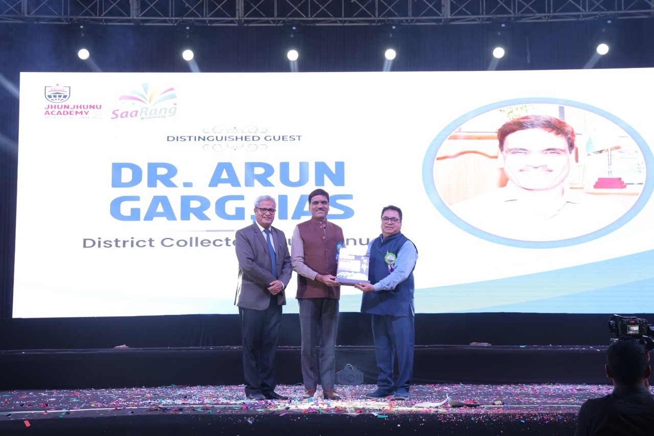 समसपुर रोड पर विज्डम सिटी में बुधवार की शाम झुंझुनूं एकेडमी विज्डम सिटी के वार्षिकोत्सव सारंग 2025 में स्कूल के बच्चों ने शानदार कार्यक्रमों की प्रस्तुति देकर कार्यक्रम में मौजूद हजारों लोगों का मन मोह लिया। इसके साथ ही शिक्षा जगत में नई क्रांति का सूत्रपात भी हुआ। स्कूल के चेयरमैन डॉ. दिलीप मोदी ने नई शिक्षा नीति के अनुरूप एक क्रांतिकारी कदम की घोषणा की। उन्होंने कहा कि समय की मांग के अनुसार शिक्षा प्रणाली में यह बदलाव करना ही होगा अन्यथा हम बच्चों का भविष्य नहीं बचा पाएंगे। इस अवसर पर उन्होंने 9वीं से 12वीं तक के बच्चों के लिए यंग एंटरप्रेन्योर स्कूल वाईईएस यानि यस की लांचिंग की। चार बजे के बाद पांचवें और छठे घंटे के बारे में रोचक ढंग से बताते हुए डॉ. मोदी ने कहा कि मैन, मनी, मटेरियल और मशीन को अगर मोदी का साथ मिले तो मिरेकल संभव है। डा. मोदी ने स्लाइड्स के माध्यम से बड़ी स्क्रीन पर इस नई पहल के बारे में स्टेप बाई स्टेप प्रजेंटेशन दिया और कहा कि अब ऐसा प्रयोग जरूरी हो गया है। उन्होंने कहा कि हम आज जो परंपरागत शिक्षा दे रहे हैं कल वह किसी काम की नहीं रहेगी। इसलिए इसमें बदलाव किए जाने की सख्त आवश्यकता है। जिला कलेक्टर डॉ. अरुण गर्ग ने कहा कि मोदी वर्ल्ड स्कूल 43 वर्षों की कड़ी मेहनत और अथक परिश्रम का परिणाम है। यहां डॉ. मोदी के क्रांतिकारी चिंतन से उपजे यस में पोटेंशियल्टी है और यह समय की जरूरत है। स्कूल के डायरेक्टर आकाश मोदी ने कहा कि सारंग के दौरान हर साल नई घोषणा कर उसे फलीभूत किया जाता है। यह वादा हर हाल में पूरा किया जाता है। इस बार यह वादा यंग एंटरप्रेन्योर स्कूल के नाम से किया गया है। जिसे हर हाल में सफल किया जाएगा और बच्चों के भविष्य के सपने को साकार किया जाएगा। उन्होंने पूर्व में किए गए वादों और उन्हें पूरा करने के बारे में विस्तार से बताया। कार्यक्रम के दौरान स्कूल के बच्चों ने एक से बढ़कर एक शानदार प्रस्तुति दी। एआई यानि आर्टिफिशियल इंटेलीजेंस पर बच्चों की समय परक शानदार प्रस्तुति, मोदी वर्ल्ड स्कूल की बस में सवार बच्चों का डांस, छोटे-छोटे बच्चों का हवा-हवाई, दीवानगी-दीवानगी, यम्मा-यम्मा पर डांस, ग्लोरी आफ लार्डकृष्णा पर डांस, गीत की प्रभावी प्रस्तुति, जॉली एंजल्स के नहें मुन्नों ने अतिथियों का मन मोह लिया। पेड़-पौधों की पोशाकों से सजे धजे बच्चों ने फील दी फारेस्ट की आकर्षक प्रस्तुति देकर ग्रीन स्कूल के कंसेप्ट को साकार कर दिया। बच्चों ने स्कूल चेयरमैन डॉ. दिलीप मोदी और हॉस्टल डायरेक्टर कुरड़ाराम धींवा की 43 वर्षों की दोस्ती का जीवंत चित्रण पेश किया। नो रेटरो, ओनली मेटरो थीम पर बच्चों ने अद्भुत प्रस्तुति दी। शूरवीर डिफेंस एकेडमी के बच्चों ने देश भक्ति से ओतप्रोत आपरेशन 
