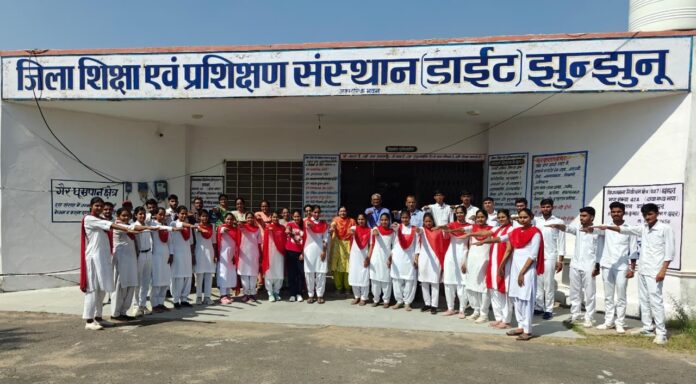 डाइट संस्थान झुंझुनूं में प्रधानाचार्या सुमित्रा झाझड़िया की अध्यक्षता में विश्व खाद्य सुरक्षा दिवस पर एक सेमीनार का आयोजन किया गया। डीएलएड प्रथम व द्वितीय वर्ष के विद्यार्थियों ने अनेक संदेशप्रद कार्यक्रम प्रस्तुत किए। जिसमें सरस्वती वंदना चंदा द्वारा, आकाश, राकेश सुथार व साक्षी द्वारा कविता वाचन किया गया। शायर व टीम ने लघु नाटिका प्रस्तुत की तथा अन्न बचाओ का संदेश दिया। सेमीनार के मुख्य वक्ता सेवानिवृत्त प्रधानाचार्य डॉ. पितराम सिंह गोदारा ने अन्न बचाओ समृद्धि लाओ पर विस्तृत व्याख्यान प्रस्तुत किया। जिसमें उन्होंने अन्न बचाने तथा जूठन छोड़कर अन्नदाता किसान व अन्न देव का अपमान न करने संबंधित शपथ दिलवाई। सेमीनार में प्रधानाचार्या सुमित्रा झाझड़िया आज के समाज में इस ज्वलंत समस्या पर चिंता व्यक्त करते हुए यह संकल्प लेने को कहा कि अन्न को व्यर्थ में बर्बाद नहीं करें। थाली में परोसे हुए खाने का सम्मान करें व प्रत्येक व्यक्ति देश सेवा के इस महायज्ञ में अपनी आहुति दे। क्योंकि अन्न बचाना भी देश सेवा का ही एक रूप है। उप प्रधानाचार्या डॉ. सीमा सूरा ने भी अपने संबोधन से बच्चों को लाभान्वित किया। इस अवसर पर वरिष्ठ व्याख्याता दीपेंद्र बुडानिया ने अपने संबोधन में विवाह शादी जैसे अवसरों पर छोड़ी जाने वाली झूठन से होने वाली बर्बादी को रोकने के लिए प्रेरित किया। पेस्ट प्रभागाध्यक्ष प्रमेंद्र कुल्हार ने अपने वक्तव्य में समस्त छात्राध्यापकों को मोटिवेट किया कि अपने परिवार, आस—पास और समाज में लोगों को अन्न बचाओ अभियान के लिए ज्यादा से ज्यादा जागरूक करें कि उतना ही लें थाली में जितना खा सकें। व्याख्याता विधि ने कार्यक्रम की व्यवस्थाएं की। इस अवसर पर प्रतिभा न्याैला, राजबाला ढाका, सरोज चौधरी, अजय प्रेमी, मोना वर्मा, डॉ. सुमन आबूसरिया, अंजू देवी, विनिता, शिल्पा, विकास, गजेंद्र, नीलम, अंजू देवी, शशिकांत, सुरेंद्रसिंह, हितेंद्र चौमाल, रविप्रकाश, सोनिया, अल्का, श्रवण कुमार, सरिता, प्रदीप ढाका, अंकित कुमार, विशाल आदि स्टाफ़ सदस्य उपस्थित रहे। कार्यक्रम का संचालन डीएलएड शिक्षार्थी सुनील कुमार व दिनेश ने किया।