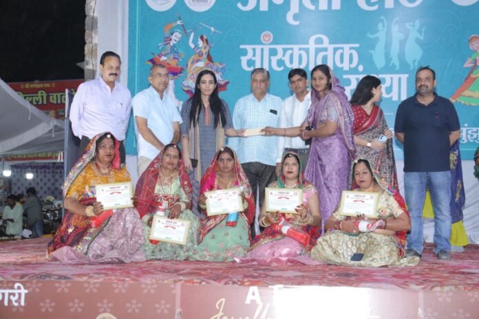 जिला मुख्यालय के शहीद परमवीर पीरू सिंह राजकीय उच्च माध्यमिक विद्यालय के खेल ग्राउंड में महिला अधिकारिता विभाग द्वारा चल रहे अमृता हाट में गुरुवार को दोपहर में जलेबी दौड़ जिसमें सुनिता प्रथम, चंद्रकला द्वितीय रही व शाम को राजीविका विभाग द्वारा सांस्कृतिक प्रतियोगिता आयोजित की गई। समारोह में झुंझुनूं एसडीएम कौशल्या बिश्नोई, महिला अधिकारिता विभाग के उप निदेशक निदेशक विपल्व न्यौला, एटीओ प्रियंका लांबा, प्रेरणा कालेर, नेहरू युवा केंद्र से मधु यादव, अल्पसंख्यक कल्याण अधिकारी नेहा झाझड़िया व अमिता गेट अतिथि के रूप में मौजूद रहे। सांस्कृतिक संध्या का संचालन उषा कुलहरि ने किया। विभाग के उप निदेशक विप्लव न्यौला ने बताया शुक्रवार को स्वयं सहायता समूह की महिलाओं द्वारा सांस्कृतिक कार्यक्रम आयोजित किया जाएगा। न्यौला ने बताया कि शनिवार को दोपहर 12 बजे मेले का समापन किया जाएगा।