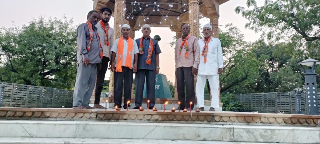 भाजपा अल्पसंख्यक मोर्चे की ओर से रविवार को शहीदों को नमन करते हुए भाजपा अल्पसंख्यक मोर्चे के जिलाध्यक्ष शौकत अली चौहान ने अल्पसंख्यक कार्यकर्ताओं के साथ शहीद स्मारक पर दीपावली के दीप जला कर छोटी दीपावली मनाई और लाल पहाड़ी क्षेत्र में रहने वाले किन्नर समाज के लोगों को मिठाई बांटकर हिंदू—मुस्लिम भाईचारे की एकता का संदेश दिया। भाजपा नेता चौहान ने दीपावली का ये खुशियों भरा त्यौहार आपसी सद्भावना एवं भाईचारे के साथ मनाए जाने की अपील की। इस अवसर पर मोर्चे के जिला महामंत्री रुस्तम अली कांट, हाजी मोहम्मद अयूब, इकबाल खान, मोर्चे के नगर मंडल अध्यक्ष खलील सिलावट, आजम राठौड़, उस्मान गनी लादूसरिया, इरफान रंगरेज चुरुवाला, अब्दुल जब्बार अब्बासी सहित अनेक मोर्चे के कार्यकर्ता मौजूद थे।