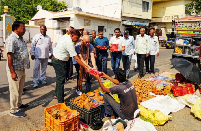 लॉयंस क्लब झुंझुनूं एवं श्री श्याम आशीर्वाद सेवा संस्था के संयुक्त तत्वावधान में शहर के मध्य गांधी चौक में सड़क के किनारे पटरी पर बैठे पूजा के दीपक, पुष्प, फल, डेकोरेशन इत्यादि दीपावली सामग्री के छोटे विक्रेताओं को मिठाई एवं पूजन सामग्री वितरण कार्यक्रम का आयोजन बाबूलाल ढंढारिया सुपुत्र रुकमणी देवी एवं स्वर्गीय गंगाधर ढंढारिया मुंबई के सौजन्य से छोटी दीपावली रविवार को गांधी चौक झुंझुनूं में किया गया। कार्यक्रम में बतौर अतिथि लॉयंस क्लब झुंझुनूं के संरक्षक स्वर्गीय एमजेएफ लॉयन डॉ. जेसी जैन के दामाद जयंत सौगानी कोलकाता एवं ट्रेफिक इंचार्ज हरफूलसिंह मीणा उपस्थित थे। जिनके सानिध्य में क्लब सदस्यों एवं सेवा संस्था के ट्रस्टीज ने उक्त कार्यक्रम संपन्न किया। श्री श्याम आशीर्वाद सेवा संस्था के ट्रस्टी डॉ. डीएन तुलस्यान ने बताया कि कार्यक्रम का आयोजन दीपावली की खुशियां और प्यार भरे रंग, आओ मनाएं मिलकर आज सभी के संग के अंतर्गत संयोजक एमजेएफ लॉयन योगेश खंडेलिया के संयोजन में आयोजित किया गया। जिसमें क्लब अध्यक्ष डॉ. देवेंद्रसिंह शेखावत, कोषाध्यक्ष भागीरथप्रसाद जांगिड़, स्पेशल केबिनेट सेक्रेटरी एमजेएफ लॉयन नरेंद्र व्यास, रीजन चेयरमैन डॉ. एनएस नरुका, किशनलाल जांगिड़, ओमप्रकाश जांगिड़, शिवकुमार जांगिड़, राजकुमार तुलस्यान, महिपाल सिंह, मुबारिक अली पठान, कैलाशचंद्र सिंघानिया, अशोक केडिया, सेवा संस्था के ट्रस्टी परमेश्वर हलवाई, सुनील तुलस्यान एवं बाबूलाल चंदेल सहित अन्यजन बड़ी संख्या में उपस्थित थे।