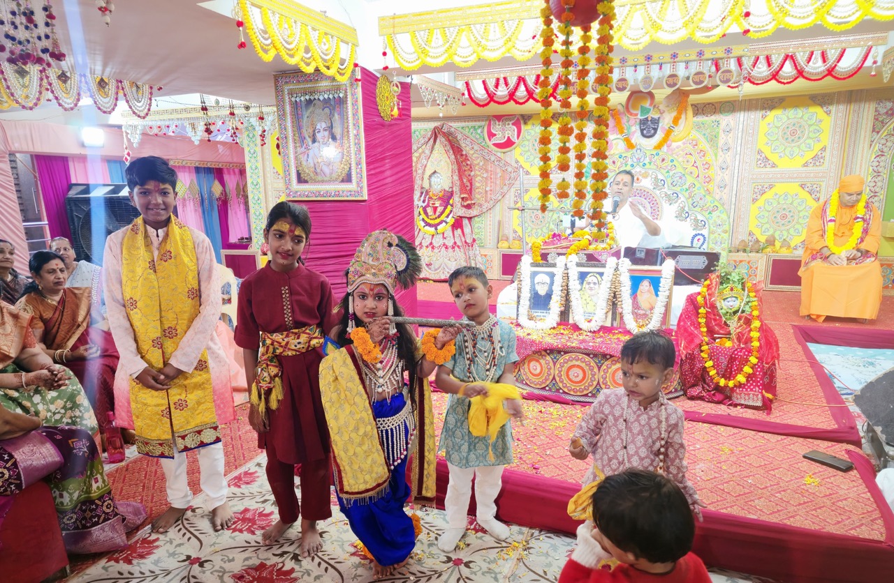माखन चोरी के बारे में बताया कि कैसे कृष्ण गोपियों के घरों से माखन चुराते थे और खाते थे। कथा के दौरान भगवान कृष्ण एवं ग्वाल बाल की सुंदर बाल लीला एवं नेकी फोड़ की जीवंत झांकी सजाई गई जो आकर्षण का केंद्र रही। कथा का शुभारंभ व्यासपीठ पर भागवत पूजन आयोजक तुलस्यान परिवार के स्नेहलता एवं डॉ. डीएन तुलस्यान द्वारा किया गया। श्री श्याम आशीर्वाद सेवा संस्थान के तत्वावधान और श्री केशरदेव देवकीनंदन तुलस्यान परिवार की ओर से आयोजित इस भागवत कथा के धार्मिक आयोजन में आशीर्वाद पैलेस हाउसिंग सोसायटी सहित शहर की अन्य धार्मिक—सामाजिक संस्थाएं भी सहयोगी है। आयोजक डॉ. डीएन तुलस्यान ने बताया कि कुलदेवी श्री राणीसती जी दादीजी एवं पितृ कृपा से भागवत कथा के आयोजन में प्रतिदिन दोपहर दो से शाम छह बजे तक भागवत कथा के साथ हर दिन सुबह पांच बजे प्रवचन, सात बजे प्रभात फेरी का आयोजन एवं प्रति दिवस सामाजिक सरोकारों में सेवा कार्य भी किए जा रहे है। प्रति दिवस सुबह प्रभात फेरी एवं कथा समापन से पूर्व इस्कॉन मंदिर के हरिभक्तों की ओर से हरिकीर्तन का आयोजन भी आकर्षण का केंद्र रहा। भागवत पूजन मूलपाठ पंडित संजू के आचार्यत्व में विद्वान पंडितों द्वारा किया गया। शहर के प्रसिद्ध पुष्करजी कैटर्स के हरीश तुलस्यान द्वारा प्रसाद की सुंदर व्यवस्था की गई एवं कथा स्थल को बहुत ही सुंदर रूप से मां भगवती डायमंड आर्ट के आशीष तुलस्यान द्वारा सजाया गया। कथा का समापन आरती पश्चात सभी भक्तों को प्रसाद वितरण के साथ किया गया। इससे पहले कथा में उपस्थित विशिष्ट जनों को संतश्री हरिशरण जी महाराज ने दुपट्टा ओढ़ाकर राधा कृष्ण का प्रतीक चिह्न भेंटकर आशीर्वाद दिया। इस अवसर पर आयोजक तुलस्यान परिवार के केशरदेव तुलस्यान, डॉ. डीएन तुलस्यान, योगेश तुलस्यान, सीए प्रशांत तुलस्यान एवं विहान तुलस्यान, गणेश हलवाई चिड़ावावाला, सीए जिम्मी मोदी, देवकी लुहारुका मलसीसर, पूरणमल अग्रवाल चनाना, श्यामसुंदर टीबड़ा, एडवोकेट संजय शर्मा, अर्जुन वर्मा, कुंजबिहारी वशिष्ठ, अशोक भाट, सुरेश मित्तल, मातादीन टीबड़ा, भरत कुमार तुलस्यान, अनिल केडिया, शिवचरण पुरोहित एवं श्री श्याम आशीर्वाद सेवा संस्था के ट्रस्टीज सहित शहर की विभिन्न सामाजिक धार्मिक संस्थाओं के पदाधिकारी एवं सदस्य बड़ी संख्या में उपस्थित थे।