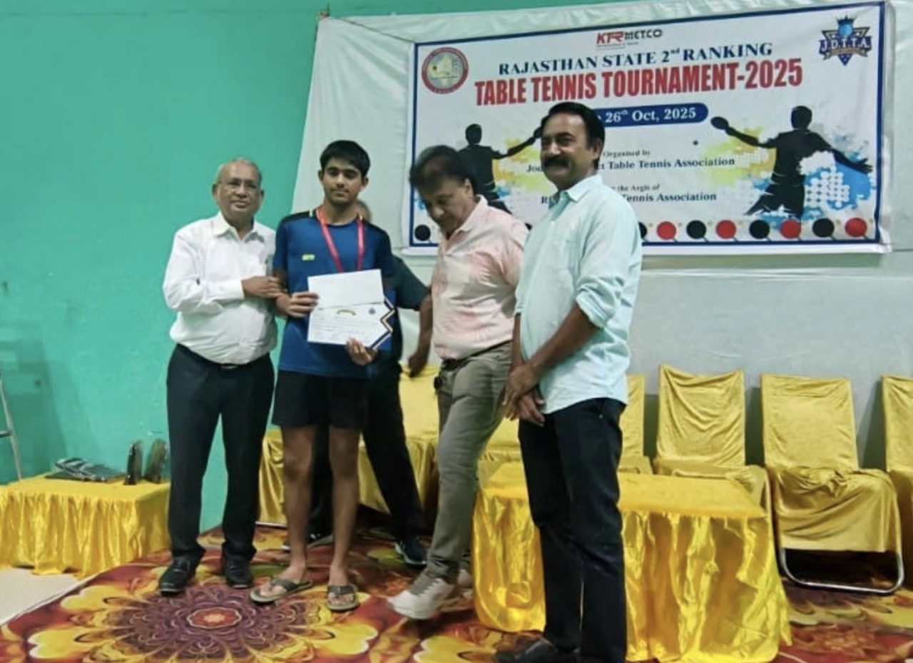 चूरू। खेलो इंडिया टेबल टेनिस सेंटर चूरू के प्रतिभाशाली खिलाड़ी सेज़ान खान ने दूसरी राजस्थान राज्य स्तरीय टेबल टेनिस प्रतियोगिता में शानदार प्रदर्शन करते हुए 15 वर्षीय वर्ग में स्वर्ण पदक तथा 17 वर्षीय वर्ग में कांस्य पदक अपने नाम किया। यह प्रतियोगिता जोधपुर में 23 अक्टूबर 2025 से आयोजित की गई थी।खेलो इंडिया प्रशिक्षक राहुल पीपलवा ने बताया कि सेज़ान ने टूर्नामेंट के सेमीफाइनल मुकाबले में जयपुर के नैतिक वीर को 3-0 से पराजित किया, जबकि फाइनल में जयपुर की प्रो स्टार अकैडमी के प्रखर बाघ को 3-1 से हराकर गोल्ड मेडल जीता।इस उपलब्धि पर चूरू टेबल टेनिस एसोसिएशन के सचिव ध्रुव पूनिया ने सेज़ान खान, उनके पिता समीर खान तथा कोच राहुल पीपलवा को हार्दिक बधाई दी और उनके उज्ज्वल भविष्य की शुभकामनाएं दीं।सेज़ान के इस प्रदर्शन से चूरू जिले में खेलो इंडिया टेबल टेनिस सेंटर की प्रतिष्ठा और खिलाड़ियों का उत्साह दोनों ही बढ़े हैं।