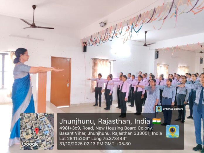 स्थानीय गणपति नगर स्थित न्यू राजस्थान बालिका पीजी महाविद्यालय में एनएसएस की दोनों इकाइयों के संयुक्त तत्वावधान में शुक्रवार को भारत के लौह पुरुष सरदार वल्लभभाई पटेल की 150वीं जयंती के उपलक्ष्य में राष्ट्रीय एकता दिवस मनाया गया। इस अवसर पर महाविद्यालय प्राचार्या डॉ. सुमन जानूं ने एनएसएस स्वयंसेविकाओं व स्टाफ सदस्यों को राष्ट्र की एकता, अखंडता और सुरक्षा को बनाए रखने के लिए समर्पित रहने की शपथ दिलवाई। संस्था सचिव इंजी. पीयूष ढूकिया ने छात्राओं को सरदार वल्लभ भाई पटेल के दृढ संकल्प, साहस और देश के प्रति उनके अमूल्य योगदान से अवगत कराया। साथ ही उन्होंने छात्राओं से एक भारत, श्रेष्ठ भारत के दृष्टिकोण को साकार करने और देश की विविधता में एकता की भावना को आत्मसात करने का आग्रह किया। इस अवसर पर छात्रा कोमल, लक्षिता सिया एंजल व ग्रेसी आदि ने सरदार वल्लभ भाई पटेल की जीवनी तथा देश की एकता व अखंडता पर भाषण के माध्यम से अपने विचार अभिव्यक्त किए। इस दौरान एनएसएस प्रभारी पिंकेश, अंजू सैनी समस्त स्टाफ सदस्य एवं छात्राएं उपस्थित रहे।
