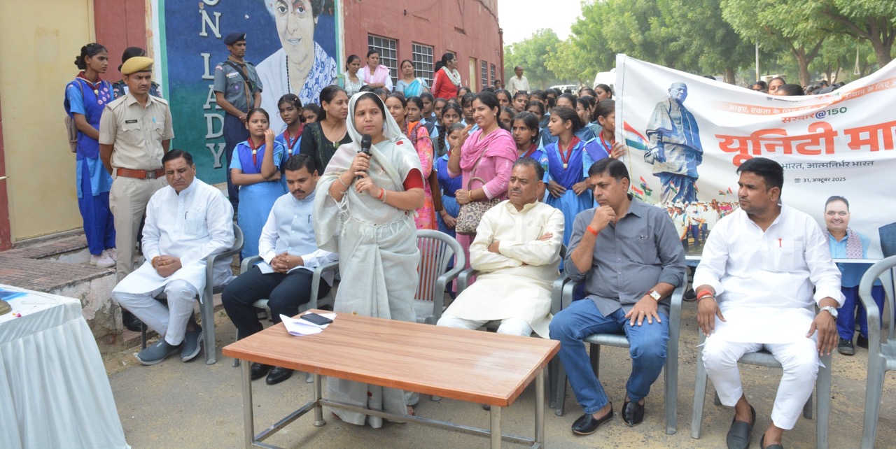 जिला कलक्टर अभिषेक सुराणा ने बताया कि सरदार@150 एकता समारोह का उद्देश्य युवाओं को सरदार पटेल के योगदान से अवगत कराना और समाज में एकजुटता की भावना को सशक्त बनाना है। भारत आने वाले 25 वर्षों में 10 ट्रिलियन डॉलर की इकोनॉमी बनने जा रहा है। उन्होंने कहा कि सरदार पटेल ने अखिल भारतीय सेवाओं सहित मजबूत प्रशासनिक तंत्र भारत को दिया है। उन्होंने कहा कि सरदार पटेल के जीवन से हमें यह सीख मिलती है कि किसी भी राष्ट्र की नींव उसकी एकता और अखंडता में निहित होती है। उन्होंने जिस दूरदर्शिता और कठोर निर्णयों के माध्यम से भारत का राजनीतिक एकीकरण किया, वह आधुनिक भारत की आत्मा है।विधायक सहारण ने एकता, जिला प्रमुख आर्य ने आत्मनिर्भर व स्वदेशी अपनाने तथा जिला कलक्टर सुराणा ने स्वच्छता की शपथ दिलाई।