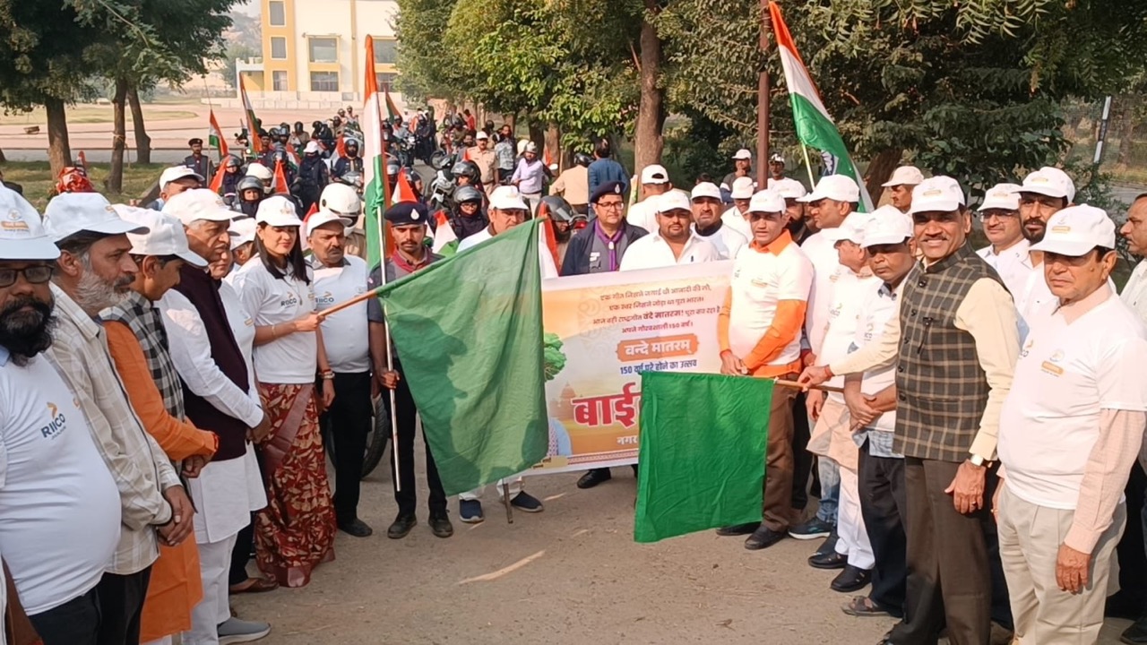 जिला मुख्यालय पर में वंदे मातरम @ 150 के तहत रविवार को बाइक—स्कूटी रैली का आयोजन किया गया। जिसमें खास बात यह रही कि जिला कलेक्टर डॉ. अरूण गर्ग ने बाइक—स्कूटी रैली को हरी झंडी दिखाने के बाद अपनी खुद की गाड़ी छोड़कर स्कूटी के जरिए ही करीब चार किलोमीटर की सफर तय किया। इस दौरान हेलमेट लगाने के अलावा जिला कलेक्टर डॉ. अरूण गर्ग ने सभी यातायात नियमों का पालन भी किया। दरअसल रविवार को सेठ मोतीलाल स्टेडियम से लेकर शहीद स्मारक तक करीब चार किलोमीटर लंबी बाइक रैली का आयोजन किया गया था। जिसमें सैंकड़ों की संख्या में शहरवासी बाइक और स्कूटी लेकर शामिल हुए। विधायक राजेंद्र भांबू, जिला कलेक्टर डॉ. अरूण गर्ग तथा