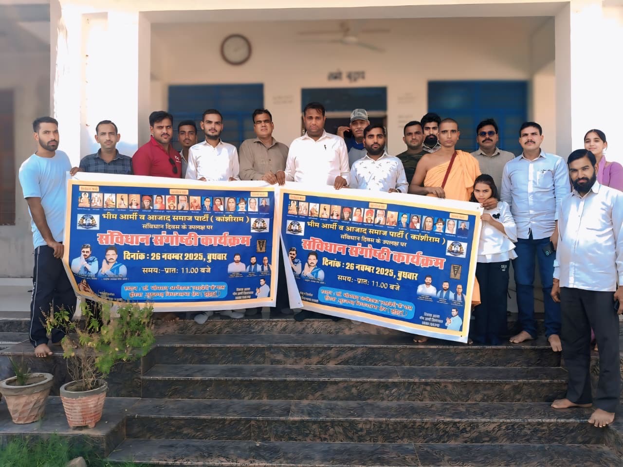 रविवार को बुद्ध विहार जय पहाड़ी में सूरजगढ़ विधानसभा क्षेत्र के हीरवा गांव में संविधान दिवस के अवसर पर संविधान संगोष्ठी कार्यक्रम का पोस्टर विमोचन भंते विनयपाल द्वारा किया गया। भीम आर्मी जिलाध्यक्ष विकास आल्हा ने दीप प्रज्ज्वलित कर कार्यक्रम शुरुआत की। पूज्य भंते विनयपाल द्वारा त्रिशरण पंचशील दिया। भीम आर्मी जिलाध्यक्ष विकास आल्हा ने बताया कि सूरजगढ़ विधानसभा के क्षेत्र ग्राम पंचायत हीरवा में 26 नवंबर को संविधान दिवस के उपलक्ष में संविधान संगोष्ठी कार्यक्रम भंते विनयपाल सानिध्य में आयोजित किया जाएगा। कार्यक्रम में मुख्य अतिथि भीम आर्मी व आजाद समाज पार्टी कोर कमेटी सदस्य महाराष्ट्र व मध्य प्रदेश प्रभारी अनिल धेनवाल होंगे। विशिष्ट अतिथि भीम आर्मी प्रदेश अध्यक्ष जितेंद्र हटवाल व आजाद समाज पार्टी प्रदेश अध्यक्ष अमरचंद हरसोलिया रहेंगे। कार्यक्रम की अध्यक्षता सूरजगढ़ विधानसभा क्षेत्र से विधायक प्रत्याशी शकुन जिलोवा होंगे। पोस्टर विमोचन कार्यक्रम में बगड़ नगरपालिका के पूर्व चेयरमैन सतवीर बरवड़, बुद्ध विहार ट्रस्टी मैनेजर दुर्गाप्रसाद बोयल, भीम आर्मी जिला सहसचिव मनोज बोयल, ग्रामीण मंडल अध्यक्ष मुनींद्र गर्वा, राजेश गोठवाल, खुडाना, कोषाध्यक्ष दिनेश गर्वा, रोहिताश बोयल, महिपाल, कृष्ण कुमार, सुनिल कुमार लांबा गोठड़ा, जयसिंह, जोगेंद्र आल्हा, आकाश आल्हा, तपेंद्र आल्हा, दीपिका, इशिका व छोटे बच्चों उपस्थित रहे। संगठन के कार्यकर्ता लगातार बहुजन समाज से जुड़े लोगों से संपर्क साध रहे हैं। कार्यक्रम को ऐतिहासिक और सफल बनाने के लिए बड़े स्तर पर तैयारियां की गई हैं। जिलाध्यक्ष विकास आल्हा ने बताया हैं कि भीम आर्मी व आजाद समाज पार्टी का यह संविधान संगोष्ठी कार्यक्रम बहुजन समाज की एकजुटता का प्रतीक बनेगा। जिलेभर से कार्यकर्ता इसमें भाग लेंगे और संगठन व पार्टी को नई ऊर्जा प्रदान करेंगे।