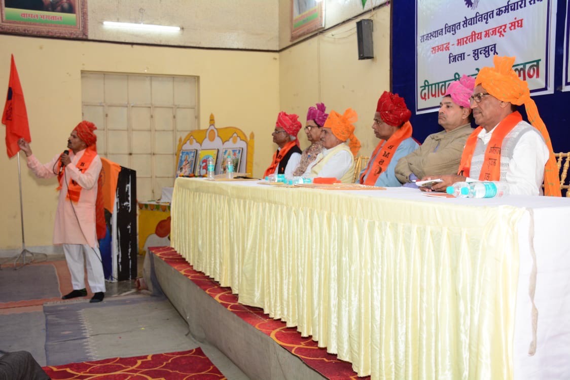 भारतीय मजदूर संघ से संबद्ध राजस्थान विद्युत सेवानिवृत्त कर्मचारी संघ व विद्युत निगम पेंशनर्स कल्याण समिति का दीपावली स्नेह मिलन कार्यक्रम स्थानीय केशव आदर्श विद्या मंदिर परिसर में केबी वशिष्ठ व नंदलाल सैनी की अध्यक्षता में संपन्न हुआ। मुख्य अतिथि विधायक राजेंद्र भांबू ने कहा कि भारतीय मजदूर संघ राष्ट्रीय हित उद्योग हित व मजदूर हित की अवधारणा के आधार पर कार्य करने वाला देश का सबसे बड़ा संगठन है।
