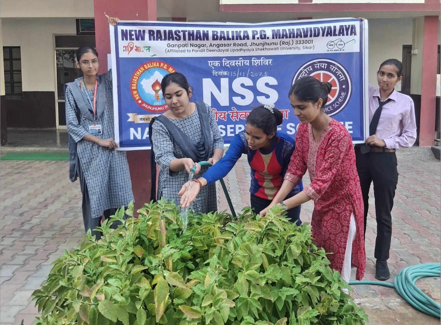 स्थानीय गणपति नगर स्थित न्यू राजस्थान बालिका पीजी महाविद्यालय में एनएसएस की दोनों इकाइयों के संयुक्त तत्वावधान में शनिवार को एक दिवसीय शिविर का आयोजन किया गया। शिविर के प्रथम सत्र में वंदे मातरम—150 कार्यक्रम के तहत भाजपा जिला उपाध्यक्ष इंजीनियर प्यारेलाल ढूकिया ने स्वदेशी वस्तुओं के अधिकाधिक उपयोग के लिए स्वदेशी संकल्प की शपथ दिलाई और बताया कि हमें अपने दैनिक जीवन में अधिकाधिक भारतीय उत्पादों का उपयोग कर युवाओं व बच्चों को स्वदेशी वस्तुएं अपनाने के लिए प्रेरित करना चाहिए। इस अवसर पर स्वदेशी खेलों को बढ़ावा देने के लिए छात्राओं के मध्य विभिन्न खेल गतिविधियां, रस्साकस्सी, खो-खो, कबड्डी, सतौलिया, रुमाल झपट्टा व तीन टांग की दौड़ आदि का आयोजन करवाया गया। शिविर के द्वितीय सत्र में एनएसएस प्रभारी की देखरेख में स्वयंसेविकाओं ने महाविद्यालय परिसर में साफ सफाई की। पेड़ पौधों की कटाई-छटाई कर पानी दिया तथा लाइब्रेरी में पुस्तकों को व्यवस्थित कर, साफ सफाई कर श्रमदान किया। महाविद्यालय प्राचार्य डॉ. सुमन जानूं ने सभी स्वयंसेविकाओं को बताया कि स्वच्छता ही सेवा है एवं सेवा ही धर्म है। इसलिए हमें अपने परिवेश व वातावरण को स्वच्छता व साफ रखना चाहिए। इस अवसर पर एनएसएस प्रभारी पिंकेश, अंजू सैनी, समस्त स्टाफ सदस्य व स्वयं सेविकाएं उपस्थित रहे।