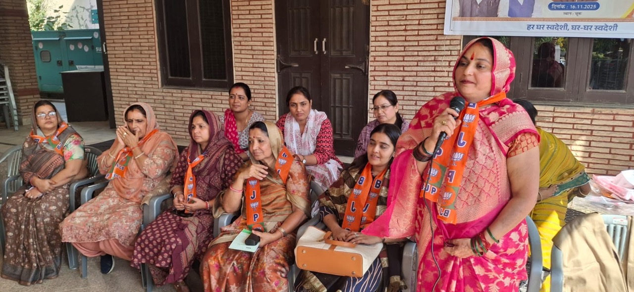 जिला प्रमुख वंदना आर्य ने कहा कि भाजपा की डबल इंजन सरकार ने महिलाओं के लिए अनेक कल्याणकारी कदम उठाए हैं, जिनसे देश विकास की ओर निरंतर अग्रसर है।कार्यक्रम जिला प्रभारी व महिला मोर्चा जिलाध्यक्ष प्रभा धंधावत ने कार्यक्रम की रूपरेखा प्रस्तुत करते हुए कहा कि आत्मनिर्भर भारत का सपना तभी साकार होगा जब मातृशक्ति आत्मनिर्भर और सशक्त बनेगी। सम्मेलन में उपस्थित महिलाओं को स्वदेशी उत्पाद अपनाने की शपथ भी दिलवाई गई।कार्यक्रम में राष्ट्रीय परिषद् सदस्य ओम सारस्वत, जिला महामंत्री अभिषेक चोटिया, जिला उपाध्यक्ष भास्कर शर्मा, सोशल मीडिया जिला सहसंयोजक सुरेश मिश्रा, जिला सहकोषाध्यक्ष रचना कोठारी सहित रेखा राजोतिया, कृष्णा, सुमन चौधरी, गुलाब कंवर, सुप्यार चारण, गायत्री, सुमन, शोभा चौधरी, सीमा शर्मा, निर्मला, रेखा, सरोज शेखावत, अंजू शेखावत, उषा सोनी सहित अनेक महिलाएँ उपस्थित रहीं। कार्यक्रम का संचालन जिला मंत्री एवं सहसंयोजक भारती मुदगल ने किया।