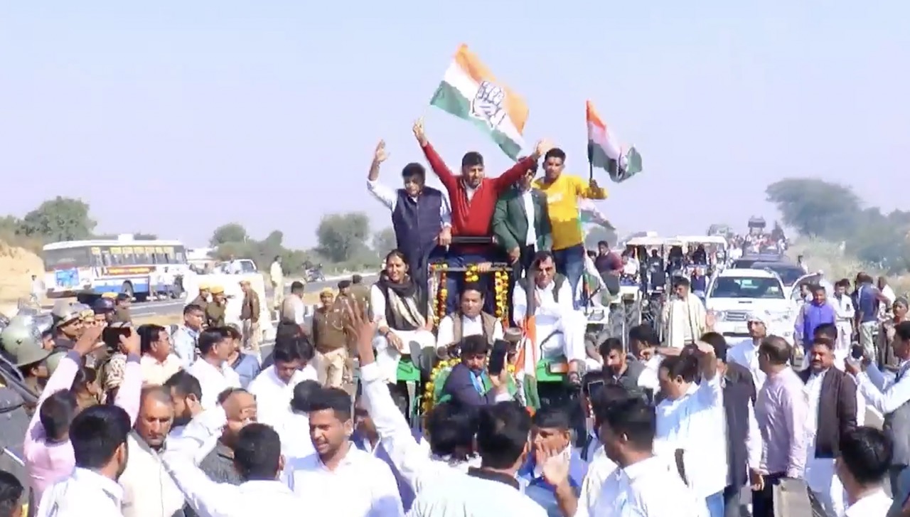 चूरू । सांसद राहुल कस्वां के नेतृत्व में किसानों की मांगों को लेकर प्रस्तावित ट्रैक्टर मार्च सोमवार को प्रशासन और पुलिस की कड़ी निगरानी के बीच शुरू तो हुआ, लेकिन पूरे दिन तनावपूर्ण माहौल के बाद इसे स्थगित कर दिया गया। किसानों की लंबित समस्याओं और खरीफ 2021 के लगभग 500 करोड़ रूपये के फसल बीमा क्लेम सहित विभिन्न मुद्दों पर यह बड़ा आंदोलन आयोजित किया गया था।जिले की सीमाओं पर प्रशासन ने कड़े इंतजाम करते हुए नेशनल हाईवे-52 पर भारी पुलिस बल तैनात किया। जगह-जगह नाकाबंदी कर ट्रैक्टरों को आगे बढ़ने से रोका गया।