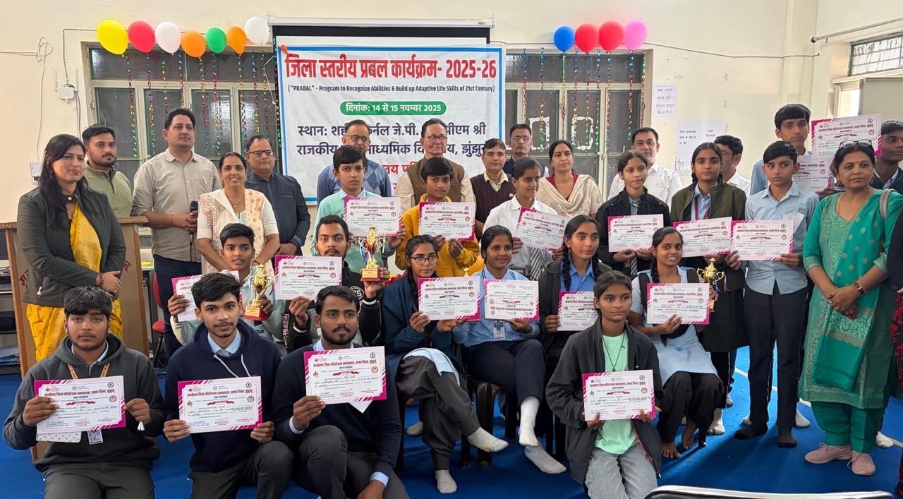राजस्थान स्कूल शिक्षा परिषद जयपुर के निर्देशन में शहीद कर्नल जेपी जानूं राउमावि झुंझुनूं में जिला स्तरीय प्रबल कार्यक्रम का आयोजन सफलतापूर्वक संपन्न हुआ। कार्यक्रम में मुख्य अतिथि के रूप में मुख्य जिला शिक्षा अधिकारी अशोक शर्मा उपस्थित रहे। कार्यक्रम की अध्यक्षता अभिषेक चौधरी प्रधानाचार्य जेपी जानूं स्कूल ने की। जिला मेंटर अंजू चौधरी उप प्राचार्य ने बताया कि कार्यक्रम का उद्देश्य विद्यार्थियों में 21वीं सदी के कौशल, जीवन कौशल, वित्तीय साक्षरता, नेतृत्व क्षमता, जलवायु परिवर्तन जागरूकता और सक्रिय नागरिकता जैसे महत्वपूर्ण कौशलों का विकास करना था। जिला प्रभारी राजबाला खीचड़ एपीसी ने बताया कि जिले के प्रत्येक ब्लॉक से चयनित छात्र-छात्राओं ने पैनल चर्चा, आशु भाषण और नाट्य प्रस्तुति जैसी गतिविधियों में भाग लिया। निर्णायक मंडल में अभिषेक चौधरी, अशोक जांगिड़ सहायक निदेशक समसा, राजबाला खीचड़, सीमा सूरा, मनोज, तनु शामिल रहे। जिला स्तर पर उत्कृष्ट प्रदर्शन करने वाले विद्यार्थियों रक्षित, हिमांशु, मिनाक्षी यादव, साक्षी को राज्य स्तरीय प्रबल कार्यक्रम के लिए जयपुर में तीन दिवसीय प्रशिक्षण के लिए चयनित किया गया। इसके बाद ये विद्यार्थी विधानसभा जयपुर में छात्र संसद के रूप में प्रस्तुति देंगे। कार्यक्रम के अंत में सभी प्रतिभागियों को प्रमाण पत्र प्रदान किए गए। जबकि राज्य स्तरीय चयनित विद्यार्थियों को प्रमाण पत्र और प्रतीक चिह्न देकर सम्मानित किया गया। कार्यक्रम में महेंद्र सैनी एसीबीओ उदयपुरवाटी, ताहिर खान, अंजेश जांगिड़, रवीश राहड़, रमेश तेतरवाल, पवन, राकेश आदि उपस्थित रहे। मंच संचालन अजीत चौधरी ने किया।