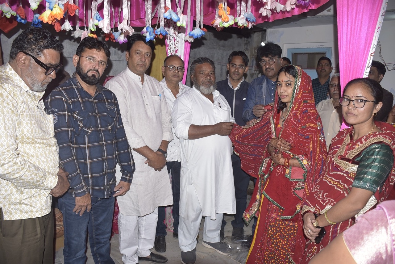आपको बता दें कि चूरू निवासी परमेश्वर लाल राजोतिया का निधन हो चुका है तथा उनके कोई लड़का भी नहीं है तथा माता बिमार है ऐसी परिस्थिति में परमेश्वर लाल राजोतिया की पुञी नन्दनी के शादी के अवसर पर मुस्लिम भाई आगे आयें ओर बहिन की शादी में एक लाख इक्कीसों रूपये कन्या दान स्वरूप भेंट सांप्रदायिक सद्भाव एवं सोहार्द की अनूठी मिशाल कायम की है। जाति धर्म से उपर उठकर गंगा जमुना तहजीब को समर्पित भाई बहन के पाक पवित्र रिश्ते को चरितार्थ करने वाले इस पावन अवसर पर सपना शर्मा, दुर्गा वर्मा, भंवर लाल जांगिड़, सुभाष जांगिड, सत्यनारायण जांगिड़, जगदीश सौनी, महबूब भाटी, इब्राहिम सौलकीं, असगर चौहान सहित बड़ी संख्या में सर्वसमाज के गणमान्य लोग उपस्थित थे।