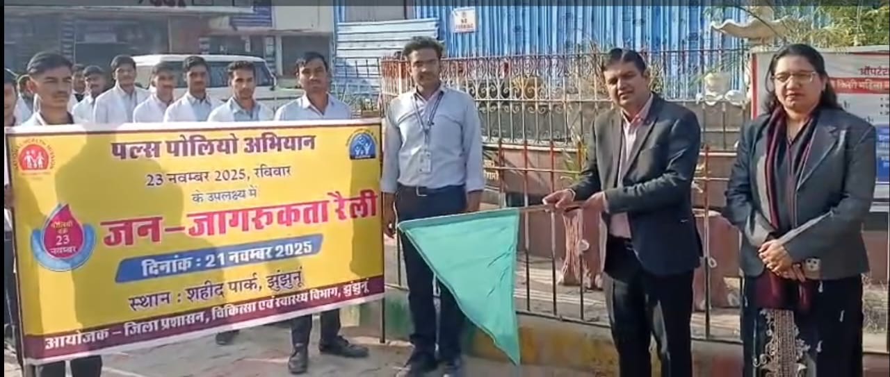 जिले के सबसे बड़े राजकीय बीडीके अस्पताल झुंझुनूं से प्रशिक्षु नर्सिंग विद्यार्थियों के द्वारा पोलियो जागरूकता रैली का आयोजन किया गया। पीएमओ डॉ. जितेंद्र भांबू ने जागरूकता रैली को हरी झंडी दिखाकर रवाना किया। नर्सिंग विद्यार्थियों ने नारा, स्लोगन के माध्यम से पोलियो के प्रति जागरूकता का संदेश दिया गया। रैली को कलेक्ट्रेट सर्किल पर प्रधानाचार्य आबिदा खान, पूनम भास्कर, अंजना चौधरी ने संबोधित करते हुए पोलियो दवा पिलाने की महत्ता बताई। पीएमओ एवं वरिष्ठ शिशु रोग विशेषज्ञ डॉ. जितेंद्र भांबू ने बताया कि रविवार 23 नवंबर को पोलियो की दवा बूथ बनाकर पिलाई जाएगी। अन्य दो दिवस शेष वंचित बच्चों को पिलाने के लिए रखा गया है। अधिकाधिक अभिभावक बच्चों को रविवार को ही दवा पिलाने का प्रयास करेंगे इसी बाबत निरंतर जागरूकता की जा रही है। इधर, सीएमएचओ डॉ. छोटेलाल गुर्जर ने बताया कि जिला कलेक्टर डॉ. अरुण गर्ग के दिए निर्देशानुसार पूर्व की भांति इस बार भी 23 नवंबर को पोलियो अभियान का क्रियान्वयन सफलतापूर्वक कर पांच साल तक के सभी लक्षित 1 लाख 67 हजार बच्चों को दवा पिलाकर पोलियो से उनके भविष्य को सुरक्षित बनाएंगे है। उन्होंने बताया कि अभियान को सफल बनाने के लिए जिले में कुल 1566 बूथ बनाए गए हैं। 26 ट्रांजिट टीम बनाई गई है। उन्होंने बताया कि 109 सेक्टरों में 77 वैक्सीन डिपो बनाए गए हैं। जिले में 6504 वैक्सीनेटर बनाए गए हैं। उन्होंने बताया कि कलेक्टर डॉ. अरुण गर्ग ने शिक्षा विभाग को रविवार 23 नवंबर को स्कूलों को खुला रखने के निर्देश दिए हैं। विद्युत विभाग को विद्युत सप्लाई आपूर्ति यथावत रखने के निर्देश दिए गए है I