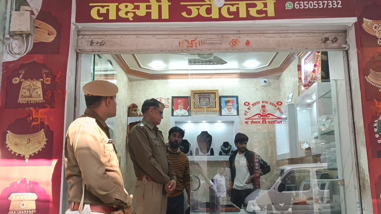 रोडवेज डिपो के सामने ढाका प्रिंटर्स वाली गली में ज्वैलरी की दुकान में चोरी की वारदात सामने आई है। वारदात करने के लिए चोर रात को करीब दो घंटे तक इलाके में घुमते रहे। लेकिन उन्हें ना तो पुलिस ने टोका और ना ही चोरों के कोई खौफ दिखा। जानकारी के अनुसार ढिगाल निवासी विकास सोनी ने पिछले महीने धनतेरस से एक दिन पहले ही झुंझुनूं शहर में ज्वैलरी शॉप खोली थी। कल रात को वह रोजाना की तरह दुकान मंगल करके गांव चला गया था। शनिवार सुबह दुकान के मालिक का फोन आया और उसने बताया कि उसकी दुकान का शटर टूटा हुआ है। जिस पर विकास सोनी आया और आकर उसने देखा तो दुकान के अंदर से ज्वैलरी भी गायब थी। उसने सीसीटीवी कैमरे संभाले तो सामने आया कि एक अज्ञात सफेद रंग की गाड़ी रात को करीब ढाई बजे उसकी दुकान के आगे आकर रूकी। जिसमें से दो युवक निकले। जिन्होंने कैमरे का डायरेक्शन बदल दिया। इसके बाद करीब दो घंटे बाद दो युवक दुकान का शटर खोलकर दुकान के अंदर घुसे। जिन्होंने दुकान में रखी करीब छह किलो वजनी चांदी और सोने के जेवरात चुराए और भाग गए। घटना की सूचना मिलने पर सिटी डीएसपी गोपाल सिंह ढाका तथा शहर कोतवाल श्रवण नील भी पहुंचे। जिन्होंने मौका मुआयना किया। शॉप के मालिक द्वारा दी गई रिपोर्ट में बताया गया है कि उसने 17 अक्टूबर को ही दुकान की ओपनिंग की थी। तिजोरी का आर्डर दिया हुआ था। तिजोरी ना होने के कारण ज्वैलरी सारी दुकान में रहती थी। वह खुद बाइक पर ढिगाल से आता—जाता है।