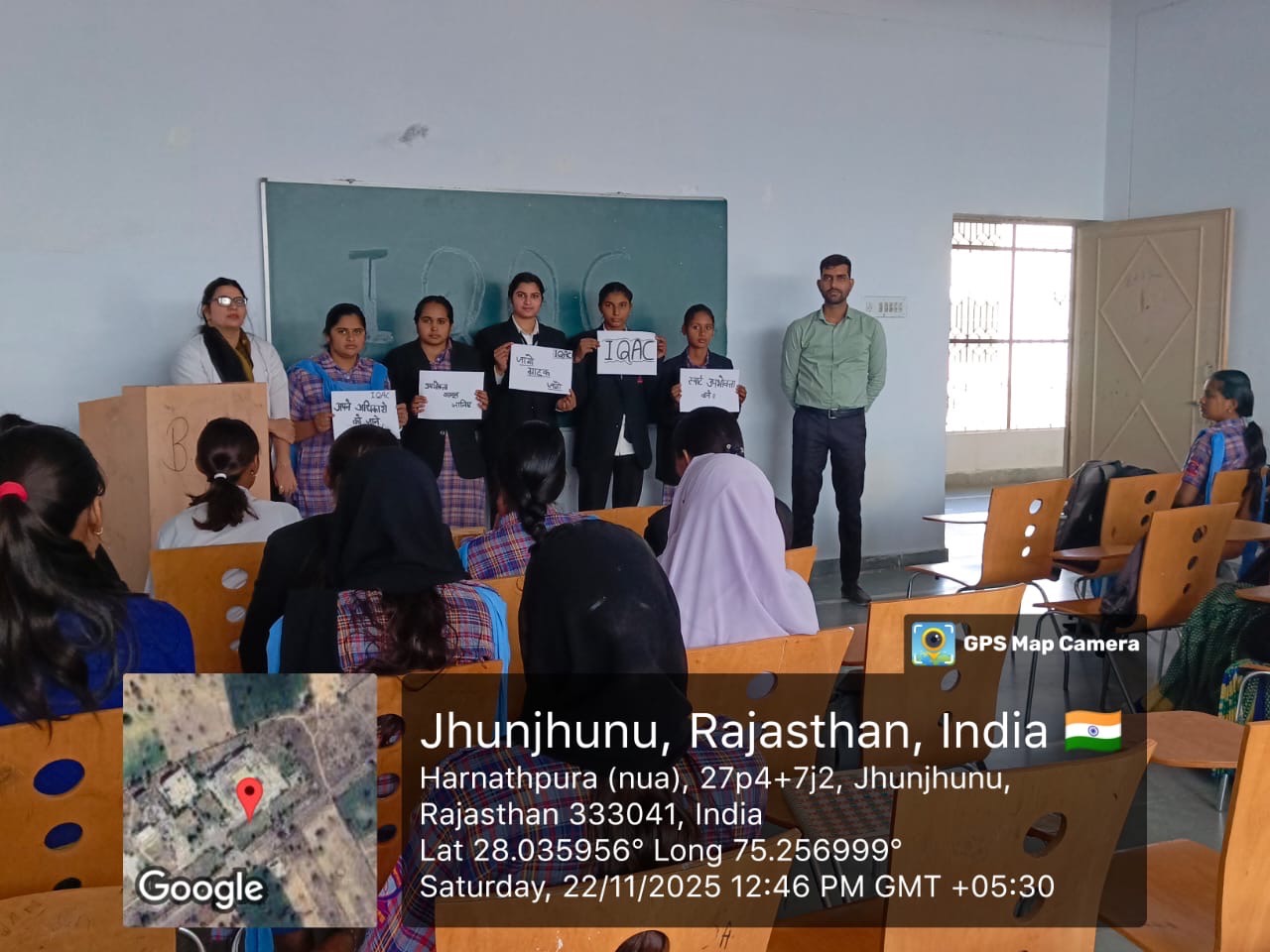 रामादेवी महिला महाविद्यालय नूआं में सोमवार को आईक्यूएसी के तहत एनएसएस के तत्वावधान में उपभोक्ता जागरूकता विषय पर पोस्टर प्रतियोगिता का आयोजन किया गया। एनएसएस प्रभारी डॉ. नीतू सिंह ने बताया कि इस कार्यक्रम में स्वयंसेविकाओं ने उपभोक्ता जागरुकता से संबंधित पोस्टर बना कर सभी को जागरूक करने का प्रयास किया। इतिहास व्याख्याता डॉ. अशोक शर्मा ने स्वयंसेविकाओं को उपभोक्ता अधिकारों की जानकारी दी। कार्यक्रम में प्राचार्या डॉ. आशा मिश्रा, उप प्राचार्या डॉ. शहला सैयद, डॉ. रमाकांत शर्मा, सतीश चौधरी, एनएसएस प्रभारी डॉ. नरेश नैण, डिम्पल मील, सुनिता जाखड़, अनीशा बानो, मनीषा मोदी, सपना स्वामी, विपिन मौजूद थे।