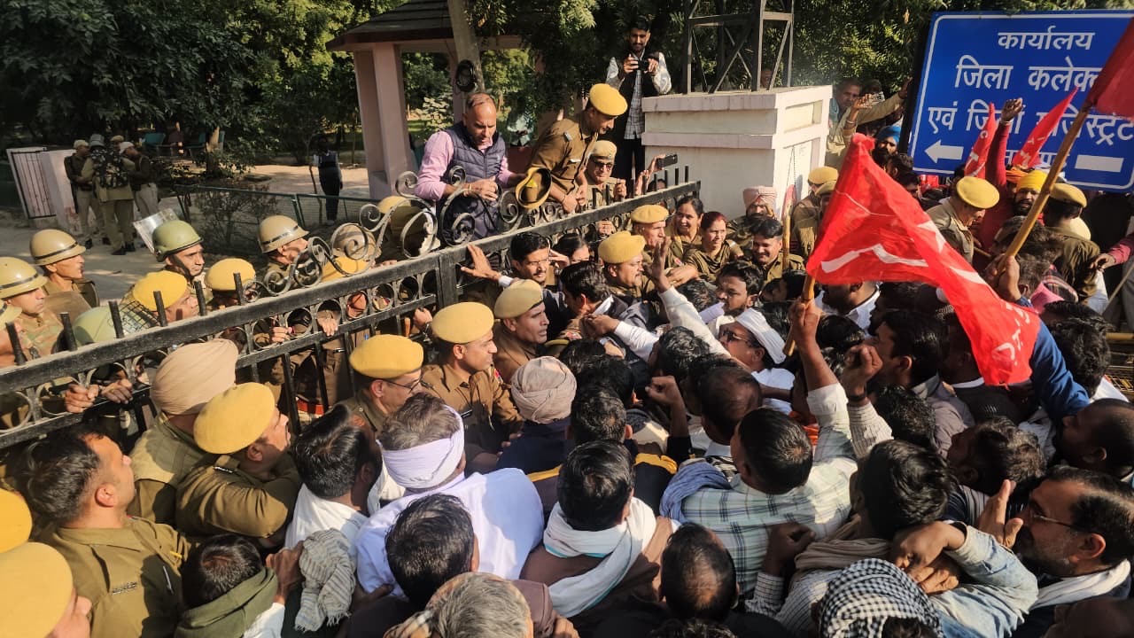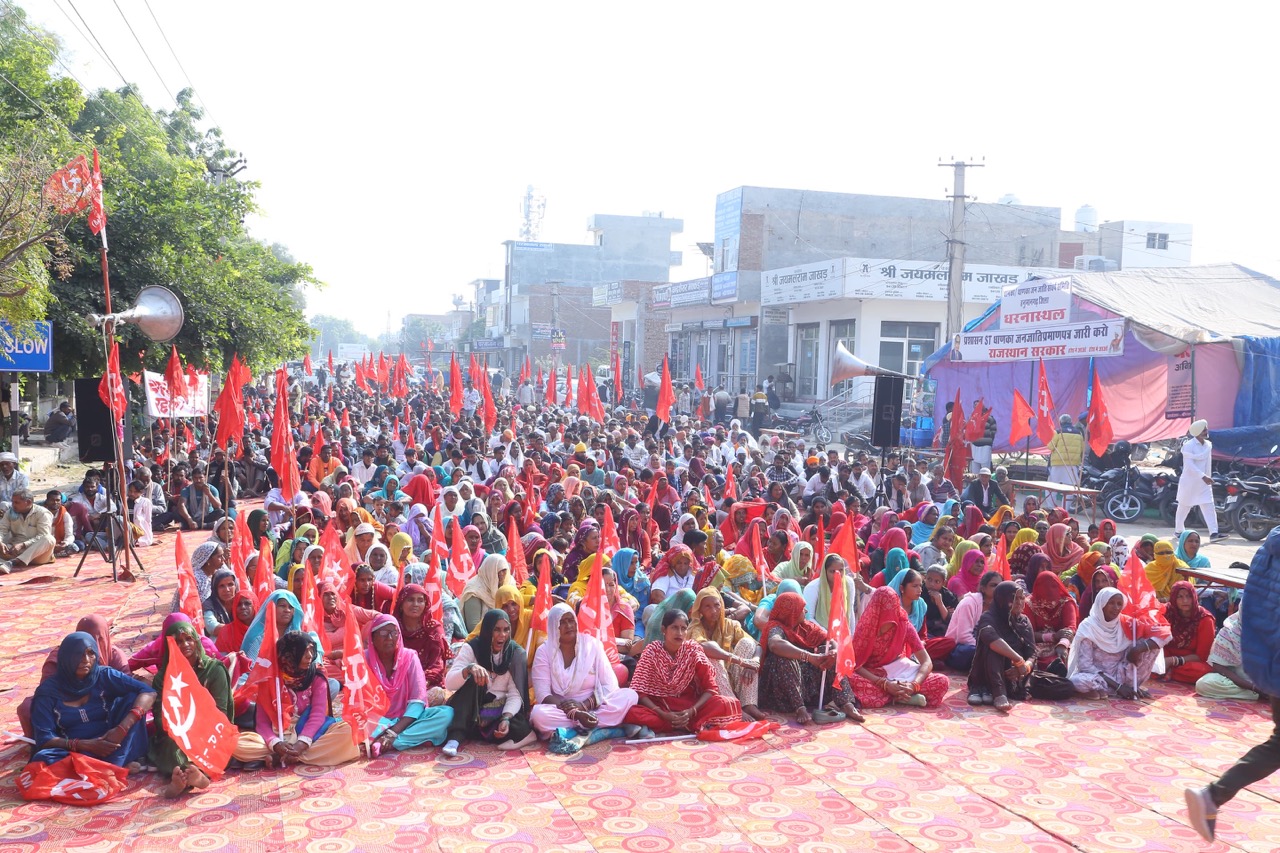 सभा को संबोधित करते हुए पूर्व विधायक बलवान पूनिया, जिला परिषद डायरेक्टर मंगेश चौधरी, सीटू जिला अध्यक्ष आत्मा सिंह, रामेश्वर वर्मा, रघुवीर सिंह वर्मा, शेर सिंह शाक्य और बहादुर सिंह चौहान ने कहा कि केन्द्र सरकार द्वारा पांच वर्ष पूर्व किसान आंदोलन के दौरान देशभर से दिल्ली पहुंचे लाखों किसानों के संघर्ष और 750 से अधिक किसानों की शहादत के बाद वापस लिए गए कृषि कानूनों को अब सरकार चोर दरवाजे से लागू करने का प्रयास कर रही है। उन्होंने कहा कि संयुक्त किसान मोर्चा, किसान सभा, सीटू, खेत मजदूर यूनियन, जनवादी महिला समिति और नौजवान सभा इन प्रयासों का पुरजोर विरोध कर रहे हैं।सभा के दौरान 13 सूत्रीय मांगपत्र पढ़कर सुनाया गया, जिसमें चारों श्रम संहिताओं को तत्काल निरस्त करने, सभी फसलों को न्यूनतम समर्थन मूल्य पर खरीदने हेतु कानून बनाने, बकाया फसल बीमा क्लेम जारी करने, अतिवृष्टि से नष्ट हुई फसलों और मकानों का मुआवजा देने, स्मार्ट मीटर बंद करने और मनरेगा कार्य तुरंत चालू कर बकाया भुगतान करने की मांग शामिल थी। इसके अतिरिक्त बिजली दरें वापस लेने, दलित–आदिवासी–महिलाओं पर बढ़ते दमन को रोकने, टिब्बी में एथेनॉल फैक्ट्री बंद करने, किसानों पर दर्ज झूठे मुकदमे वापस लेने, क्षेत्र में बढ़ रहे चिट्टा नशे पर कार्रवाई करने तथा विभिन्न गांवों में जल निकासी संबंधी स्थाई प्रबंध करने जैसी स्थानीय समस्याओं को भी प्रमुखता से उठाया गया।धरना–सभा के बाद हजारों प्रदर्शनकारी जिला कलेक्ट्रेट के मुख्य द्वार पर एकत्र हुए। वहां जोरदार नारेबाजी और प्रदर्शन किया गया। पुलिस प्रशासन को प्रदर्शनकारियों को नियंत्रित करने में कड़ी मशक्कत करनी पड़ी। अंततः प्रतिनिधिमंडल को जिला कलेक्टर तक जाने की अनुमति दी गई और राष्ट्रपति के नाम ज्ञापन सौंपा गया।संगठनों ने चेतावनी दी कि यदि सरकार श्रमिकों, किसानों और आम जनता की समस्याओं पर तुरंत प्रभाव से कार्रवाई नहीं करती तो आंदोलन को और अधिक व्यापक किया जाएगा। प्रदर्शन शांतिपूर्ण तरीके से सम्पन्न हुआ लेकिन इसके माध्यम से सरकार को स्पष्ट संदेश दिया गया कि मजदूर–किसान अपने अधिकारों की रक्षा के लिए किसी भी हद तक संघर्ष करने को तैयार हैं। आज की सभा को सीपीआई नेता साहब राम पूनिया बहादुर सिंह चौहान सुरेंद्र शर्मा ओम जांगू जगजीत सिंह जग्गी मनीराम मेघवाल गोपाल बिश्नोई चरण प्रीत बराड़ रामचंद्र राम सिंह अमरजीत बसंत सिंह देवीलाल सुल्तान खान खेत मजदूर यूनियन के नेता प्रहलाद वेद मक्कासर बलदेव सिंह मनीष बुरडक आत्मा सिंह हर्जी वर्मा रिछपाल सिंह वाली शेर अफसर अली गुरु प्रेम विनय कुमार विनोद कुमार महावर सिंह लवली राजकुमार धर्मपाल बूटा सिंह लाल सिंह राजेश जगदीश यादव संदीप जगदीश सार