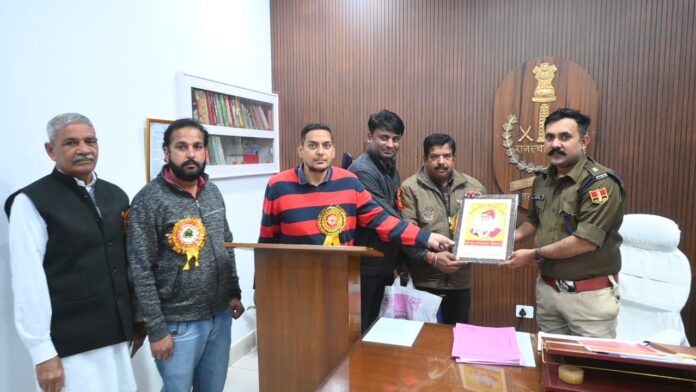 हनुमानगढ़ राष्ट्रीय युवक परिषद द्वारा एक विशेष सम्मान समारोह का आयोजन किया गया, जिसमें जिले के नव नियुक्त अतिरिक्त जिला पुलिस अधीक्षक अरविन्द बिशनोई सहित नव स्थापित थाना प्रभारियों का सम्मान किया गया। कार्यक्रम का नेतृत्व परिषद के जिलाध्यक्ष प्रवीण जैन ने किया। समारोह के दौरान शिष्टमंडल ने अतिरिक्त एसपी अरविन्द बिशनोई को स्मृति चिन्ह भेंट कर उनकी नई जिम्मेदारी के लिए शुभकामनाएँ प्रेषित कीं। परिषद सदस्यों ने उन्हें जिले का कार्यभार ग्रहण करने पर बधाई देते हुए कहा कि उनके अनुभव और नेतृत्व से जिले में कानून व्यवस्था और अधिक सुदृढ़ होगी।अतिरिक्त जिला पुलिस अधीक्षक अरविन्द बिशनोई को विशेष रूप से नशा विरोधी अभियान को गति देने और हाल ही में की गई प्रभावी कार्रवाईयों के लिए सराहा गया। परिषद सदस्यों ने कहा कि जिले में बढ़ते नशे के दुष्प्रभावों पर अंकुश लगाने के लिए पुलिस का सक्रिय रुख अत्यंत सराहनीय है। नशे के खिलाफ चल रहे व्यापक अभियान में मिली सफलता का श्रेय पुलिस-प्रशासन की दृढ़ इच्छाशक्ति और त्वरित कार्रवाई को दिया गया।इस अवसर पर जिलाध्यक्ष प्रवीण जैन ने कहा कि पुलिस प्रशासन और समाज के बीच समन्वय मजबूत होने से न केवल अपराधों पर नियंत्रण पाया जा सकता है, बल्कि नशा मुक्त और सुरक्षित समाज का निर्माण भी संभव है। उन्होंने विश्वास व्यक्त किया कि नव नियुक्त अधिकारी युवाओं को नशे से दूर रखने और समाज में सकारात्मक वातावरण बनाने में महत्वपूर्ण भूमिका निभाएँगे। उन्होंने परिषद की ओर से हर संभव सहयोग का आश्वासन भी दिया।उपस्थित सभी सदस्यों ने कानून व्यवस्था को बनाए रखने के लिए पुलिस विभाग के प्रयासों की प्रशंसा की और भविष्य में अधिक सहयोग और समन्वय का संकल्प लिया।कार्यक्रम में परिषद के कई प्रमुख सदस्य उपस्थित रहे, जिनमें रामगोपाल सेन, वीरेंद्र जैन, दुलीचंद कस्वा, रणजीत शर्मा, जितेंद्र छाबड़ा, महेंद्र स्वामी, गोपी राम सुथार, राकेश त्यागी और आदित्य शामिल थे। सभी ने संयुक्त रूप से पुलिस और समाज के बीच भरोसे और संवाद को मजबूत बनाए रखने पर बल दिया।