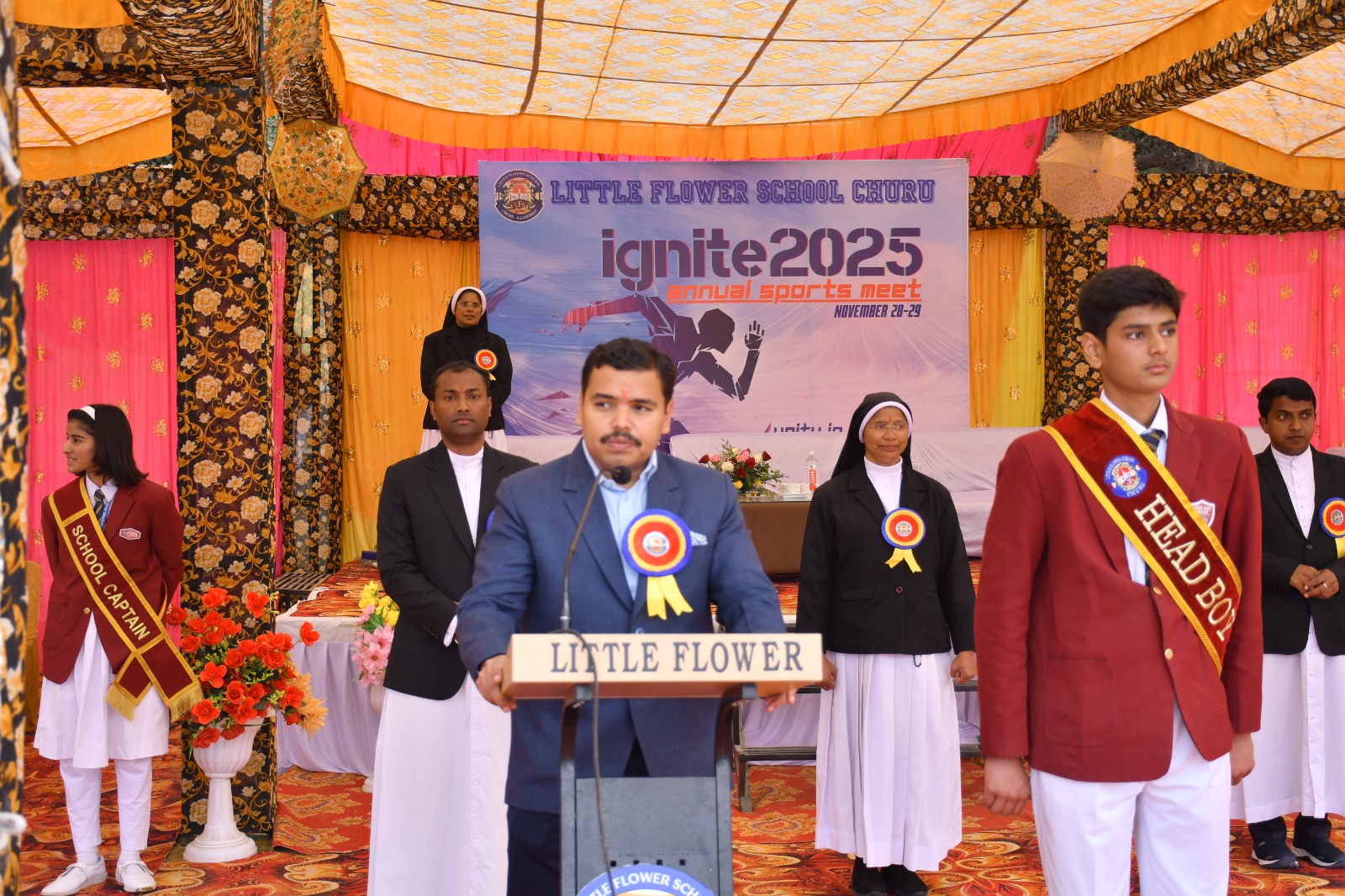 उन्होंने विद्यालय द्वारा आयोजित विभिन्न खेल गतिविधियों की सराहना की तथा कहा कि ऐसे आयोजनों से विद्यार्थियों में प्रतिस्पर्धात्मक भावना और जीतने का जज्बा विकसित होता है। जिला कलक्टर सुराणा ने कहा कि खेलों में जीत-हार से अधिक महत्वपूर्ण निरंतर भागीदारी और सीखने की भावना है। उन्होंने विद्यार्थियों को खेल और पढ़ाई दोनों में संतुलन बनाए रखने के लिए प्रेरित किया।उन्होंने विद्यार्थियों को सोशल मीडिया पर कम समय बिताने और खेलों में अधिक सक्रिय भागीदारी करने की सलाह दी। खिलाड़ी वर्ष —2036 में आयोजित होने वाले ओलंपिक के लिए तैयारी करें। हमारा प्रयास है कि एक पंचायत एक खेल के माध्यम से जिले की खेल प्रतिभाएं एक खेल का चुनाव कर उस खेल का उचित प्रशिक्षण प्राप्त करें और नई उंचाईयों को प्राप्त करें। इस दौरान मैनेजर फादर जिनेश, प्रिंसिपल सिस्टर मैबल ने अतिथियों का स्वागत किया तथा कार्यक्रम की रूपरेखा की जानकारी दी। कार्यक्रम में विद्यार्थियों ने मार्च पास्ट, खेल प्रतियोगिताओं व सांस्कृतिक कार्यक्रमों की प्रस्तुतियां दी।
