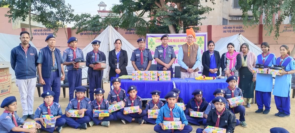 राजस्थान राज्य भारत स्काउट गाइड जिला मुख्यालय झुंझुनूं के तत्वावधान में आयोजित पांच दिवसीय अनुसूचित जाति अनुसूचित जनजाति वार्षिक ग्रुप शिविर का मुख्य जिला शिक्षा अधिकारी अशोक कुमार शर्मा ने आकस्मिक विजिट किया। इस अवसर पर उपस्थित स्काउट्स गाइड्स को संबोधित करते हुए मुख्य जिला शिक्षा अधिकारी ने कहा कि मेहनत ही सफलता की कुंजी है। इसलिए अपने जीवन में अनुशासन बनाए हुए निरंतर आगे बढ़े। जहां अवसर मिले उसको भूनाते हुए सुयोग्य नागरिकता के गुण विकसित करें। स्काउट गाइड के माध्यम से बालक बालिकाओं के व्यक्तित्व का विकास किया जाता है। इस दौरान विशिष्ट अतिथि के रूप में सहायक निदेशक शिक्षा विभाग अशोक जांगिड़ ने संबोधित करते हुए कहा कि अनुशासन ही जीवन का आधार है। स्काउट गाइड के माध्यम से बालक बालिकाओं को व्यावहारिक ज्ञान कराया जाता है। जिससे वह भविष्य जीवन हेतु अच्छे नागरिक बनते हैं। सीओ स्काउट महेश कालावत ने बताया कि इस अवसर पर मुख्य जिला शिक्षा अधिकारी अशोक कुमार शर्मा, जिला शिक्षा अधिकारी माध्यमिक शिक्षा राजेश मील, सहायक निदेशक शिक्षा अशोक जांगिड़ के सानिध्य में जिले के 130 उपस्थित अनुसूचित जाति एवं अनुसूचित जनजाति के स्काउट गाइड को यूनिफॉर्म वितरित की गई। शिक्षा अधिकारियों ने खुशी व्यक्त करते हुए कहा कि राज्य सरकार ने गरीब तबके के विद्यार्थियों को स्काउट गाइड से जोड़ने के लिए आर्थिक सहायता एवं संबलन प्रदान करती है। इसके लिए स्काउट गाइड राज्य मुख्यालय जयपुर का आभार प्रकट किया गया। इस अवसर पर स्काउट परंपरा के अनुसार अतिथियों का स्वागत अभिनंदन किया गया तथा सीओ गाइड प्रियंका खीचड़ ने सभी का आभार प्रकट कर धन्यवाद ज्ञापित किया तथा रामदेवसिंह गढ़वाल, महेश कुमार, विजेता कुमारी नेहरा, मनीषा सैनी, दिनेश कुमार अमरचंद आदि उपस्थित रहे।