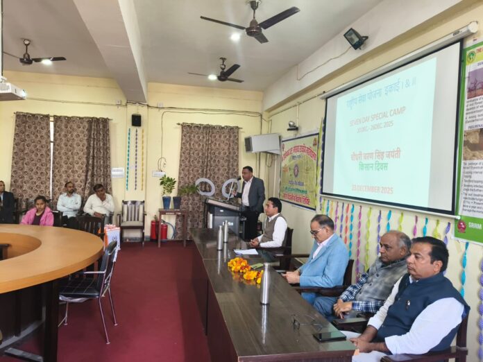 श्री राधेश्याम मोरारका महाविद्यालय झुंझुनूं में राष्ट्रीय सेवा योजना के तत्वावधान में चल रहे सात दिवसीय शिविर के चौथे दिन पूर्व प्रधानमंत्री चौधरी चरण सिंह की जयंती को राष्ट्रीय किसान दिवस के रूप में मनाया गया। इस अवसर पर कार्यक्रम के मुख्य अतिथि सज्जन सिहाग क्षेत्रीय प्रबंधक राजस्थान ग्रामीण बैंक ने किसानों के हितों के लिए चौधरी चरण सिंह द्वारा दिए गए योगदान के बारे में व्याख्यान दिया। कार्यक्रम के विशिष्ट अतिथि प्रगतिशील किसान विकेश सिहाग ने चौधरी चरण सिंह के बताए गए आदर्शों पर चलने का आह्वान किया। महाविद्यालय प्राचार्य प्रोफेसर सुरेंद्र सिंह ने चौधरी चरण सिंह के सादगीपूर्ण जीवन, कर्तव्य परायणता और राष्ट्र निर्माण में किसान व आमजन की भूमिका के विषय में विचार व्यक्त किया। कार्यक्रम में राजस्थान ग्रामीण बैंक की तरफ से सर्वश्रेष्ठ स्वयंसेवकों को पारितोषिक प्रदान किया गया। कार्यक्रम के पश्चात नई किरण नशा मुक्ति अभियान के अंतर्गत प्रभारी रतनसिंह पायल ने नशा मुक्ति की शपथ दिलाई तथा सज्जन द्वारा नशा मुक्ति पर व्याख्यान दिया गया।। कार्यक्रम में राष्ट्रीय सेवा योजना के कार्यक्रम अधिकारी रमेश कुमार एवं डॉ. विकास मील ने आगंतुकों का स्वागत व धन्यवाद दिया। कार्यक्रम में प्रोफेसर मानसिंह, डॉ. मंजू चौधरी, डॉ. शुभकरण, डॉ .पुरुषोत्तम तथा स्वयंसेवक उपस्थित रहे।