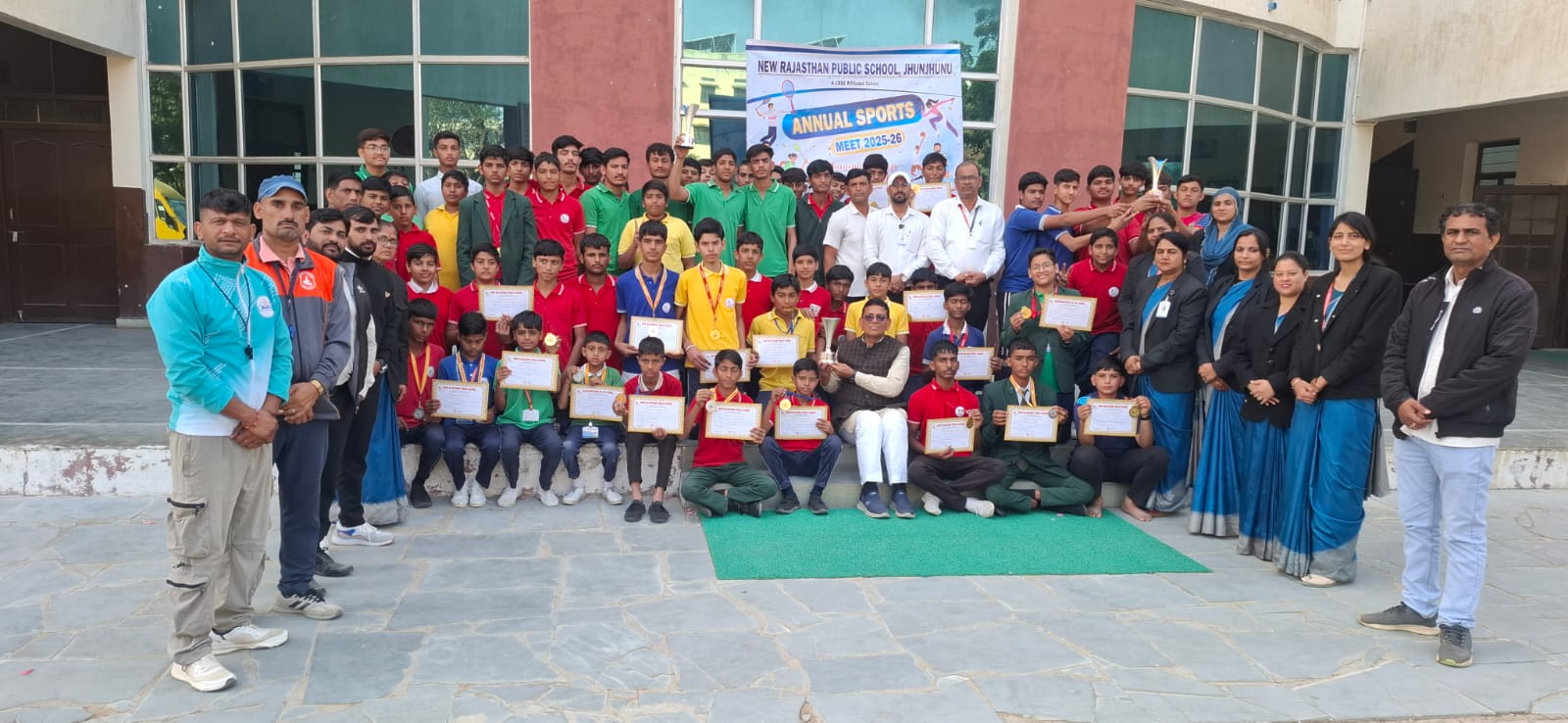 स्थानीय गणपति नगर स्थित न्यू राजस्थान पब्लिक स्कूल में दो दिवसीय वार्षिक खेलकूद प्रतियोगिता (स्पोर्ट्स मीट) का समापन पुरस्कार वितरण समारोह के साथ संपन्न हुआ। कार्यक्रम के समापन पर भाजपा जिला उपाध्यक्ष प्यारेलाल ढूकिया द्वारा विजेताओं को पुरस्कार, मैडल और प्रमाण पत्र दिए गए और कहा कि खेल न केवल शारीरिक विकास का माध्यम हैं। बल्कि यह विद्यार्थियों में आत्मविश्वास, नेतृत्व क्षमता एवं सहयोग की भावना विकसित करते हैं। समापन समारोह के अवसर पर विद्यार्थियों द्वारा आकर्षक एवं अनुशासित परेड प्रस्तुत की गई। परेड में विभिन्न हाउस एवं कक्षाओं के विद्यार्थियों ने एकरूपता, अनुशासन एवं तालमेल का उत्कृष्ट प्रदर्शन किया, परेड के माध्यम से विद्यार्थियों ने अनुशासन, एकता एवं खेल भावना का प्रभावशाली संदेश दिया। प्रतियोगिता के आखिरी दिन के अंतर्गत कक्षा एक की 100 मीटर रेस में हसन प्रथम, विहू जांगिड़ द्वितीय, निक्षिता ततृीय, कक्षा दो के स्नेक वॉक में विनय प्रथम, दक्ष द्वितीय, अहिल तृतीय, कक्षा तीन के मंकी रेस में देवांक प्रथम, रेहान द्वितीय, फाजील तृतीय, कक्षा छह की 200 मीटर रेस में इशिका प्रथम, अनुष्का द्वितीय, आरूषि तृतीय, कक्षा 10 कबड्डी में प्रथम स्थान पर विजेता रहे। तत्पश्चात परंपरानुसार विद्यालय ध्वज को सम्मानपूर्वक फोल्ड कर प्रधानाचार्या निधि सिहाग को सौंपा गया। इस अवसर पर उन्होंने ने कहा कि खेलों के माध्यम से विद्यार्थियों में स्वस्थ प्रतिस्पर्धा, सहनशीलता तथा परिश्रम की भावना का विकास होता है। जो उनके भविष्य निर्माण में सहायक सिद्ध होती है। इस अवसर पर प्रधानाचार्य शुभकरण खीचड़, राकेश झाझड़िया व समस्त स्टाफ सदस्य मौजूद रहे।