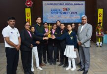 मंडावा रोड स्थित डूंडलोद पब्लिक स्कूल झुंझुनूं में खेलकूद प्रतियोगिता का समापन समारोह मुख्य अतिथि सुलतानसिंह रणवां निदेशक डीएसएस डूंडलोद के सानिध्य में हुआ। मुख्य अतिथि ने विजेताओं को पुरस्कार बांटे तथा अपने भाषण में बच्चों का अधिकाधिक प्रतियोगिता में हिस्सा लेने को सराहा तथा कहा कि सर्वांगीण विकास के लिए खेलों का अपना ही महत्व व योगदान होता है। अपने भाषण में कहा कि वे प्रतिभागी जो पुरस्कार नहीं जीत सके निराश न हो व अगले सत्र में होने वाली प्रतियोगिता के लिए अपनी तैयारी को जारी रखे। लंबे समय तक किया गया अभ्यास निसंदेह सफल होता है। चैंपियन ट्रॉफी ग्रीन हाऊस के नाम रही। प्राचार्य डॉ. सतबीर सिंह ने अतिथियों का धन्यवाद ज्ञापित किया। इस अवसर पर डीएसएस मेंबर श्रीचंद रणवां, स्कूल मैनेजिंग कमेटी मेंबर सुभाष, ऑल ओवर इंचार्ज लीलावती एवं समस्त स्कूल स्टाफ भी उपस्थित थे। अध्यापक अरूलराज ने मंच का संचालन किया।