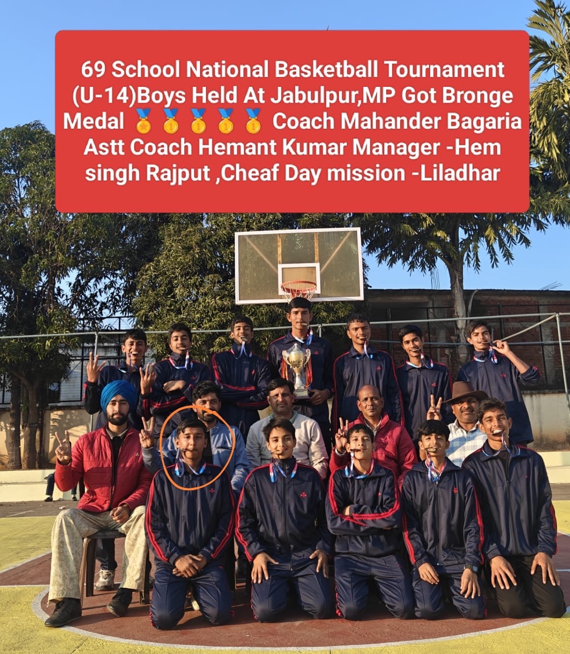 मध्य प्रदेश के जबलपुर में आयोजित 699वीं राष्ट्रीय स्कूल बास्केटबॉल प्रतियोगिता अंडर—1144 छात्र वर्ग में राजस्थान की टीम ने शानदार प्रदर्शन करते हुए कांस्य पदक हासिल किया है। इस राष्ट्रीय उपलब्धि में झुंझुनूं के जीबी मोदी विद्या मंदिर के छात्र दक्ष चौधरी ने महत्वपूर्ण भूमिका निभाई। विशेष बात यह है कि इस पूरी टीम में झुंझुनूं जिले से केवल एक ही खिलाड़ी का चयन हुआ था और वह गौरव जीबी मोदी विद्या मंदिर के छात्र दक्ष को प्राप्त हुआ। दक्ष की इस उपलब्धि ने न केवल उनके विद्यालय बल्कि पूरे शेखावाटी क्षेत्र को राष्ट्रीय स्तर पर गौरवान्वित किया है। दक्ष चौधरी की इस शानदार सफलता पर विद्यालय के सचिव श्रवण कुमार केजड़ीवाल, प्रशासनिक अनिता बंसल, प्रधानाचार्या सुनिता पाल और पीटीआई धर्मेंद्र सहित समस्त स्टाफ ने उन्हें बधाई देते हुए उनके उज्ज्वल भविष्य की कामना की है। विद्यालय प्रबंधन ने कहा कि दक्ष का यह प्रदर्शन अन्य छात्रों के लिए भी प्रेरणा का स्रोत बनेगा।