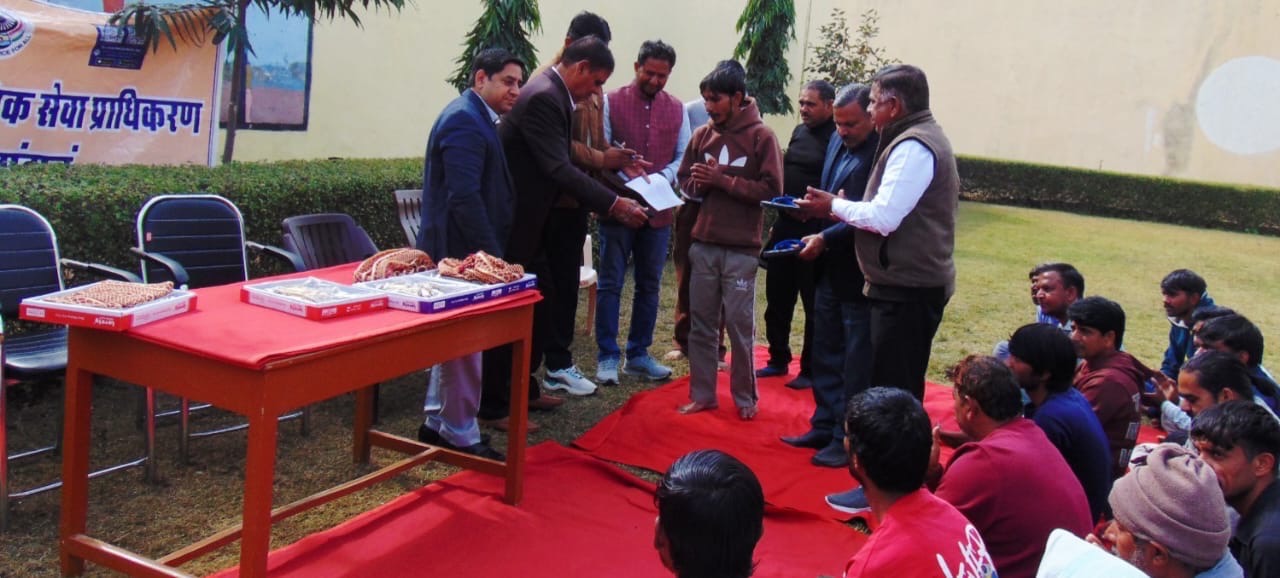 जिला विधिक सेवा प्राधिकरण झुंझुनूं के तत्वावधान में शुक्रवार को जिला जेल झुंझुनूं में विधिक साक्षरता शिविर का आयोजन किया गया। इस अवसर पर अग्रवाल समाज झुंझुनूं के पूर्व मंत्री रघुनाथ प्रसाद पोद्दार के आर्थिक सौजन्य से बंदियों को चरण पादुकाओं का वितरण किया गया। कार्यक्रम का आयोजन श्री श्याम आशीर्वाद सेवा संस्था एवं जिला विधिक सेवा प्राधिकरण झुंझुनूं के संयुक्त तत्वावधान में प्रातः 11:30 बजे सम्पन्न हुआ।कार्यक्रम के मुख्य अतिथि एडीजे एवं जिला विधिक सेवा प्राधिकरण सचिव डॉ. महेन्द्र सिंह सोलंकी रहे। उन्होंने अपने उद्बोधन में बंदियों को विधिक सेवा प्राधिकरण द्वारा उपलब्ध कराई जा रही सुविधाओं की जानकारी देते हुए बताया कि जिन बंदियों के पास अधिवक्ता नहीं है, उन्हें निःशुल्क विधिक सहायता उपलब्ध कराई जाती है। साथ ही उन्होंने “जीवन के अधिकार” के अंतर्गत बंदियों के अधिकारों एवं सरकारी योजनाओं से भी अवगत कराया। कार्यक्रम में विशिष्ट अतिथि के रूप में महावीर इंटरनेशनल झुंझुनूं के अध्यक्ष सत्यदेव दड़िया, समाजसेवी एवं फर्नीचर मैन्युफैक्चरर अनिल जांगिड तथा जेल अधीक्षक गंगाराम बिश्नोई उपस्थित रहे। अतिथियों का स्वागत श्री श्याम आशीर्वाद सेवा संस्था के ट्रस्टी डॉ. डी.एन. तुलस्यान एवं दानदाता रघुनाथ प्रसाद पोद्दार द्वारा दुपट्टा ओढ़ाकर एवं प्रतीक चिन्ह भेंट कर किया गया। इस अवसर पर जेल अधीक्षक गंगाराम बिश्नोई ने सभी अतिथियों एवं आयोजक संस्था का आभार व्यक्त करते हुए बंदियों के लिए सरकार द्वारा उपलब्ध कराई गई कंबल धोने की वाशिंग मशीन पर टीन शैड लगवाने की आवश्यकता बताई, जिस पर उपस्थित अतिथि अनिल जांगिड ने तुरंत स्वीकृति प्रदान की। साथ ही जेल परिसर में रंग-रोगन एवं अन्य आवश्यक सुधार कार्यों का प्रस्ताव रखा गया, जिस पर डॉ. डी.एन. तुलस्यान ने भामाशाहों से संपर्क कर शीघ्र व्यवस्था करवाने का आश्वासन दिया।गौरतलब है कि श्री श्याम आशीर्वाद सेवा संस्था द्वारा विगत वर्षों में जिला जेल झुंझुनूं में विभिन्न भामाशाहों के सहयोग से समय-समय पर कंबल, चरण पादुकाएं, मास्क, फल-फ्रूट वितरण जैसे सेवा कार्य किए गए हैं। इसके अतिरिक्त चौथमल सुनील कुमार पाटोदिया एवं सुनील पाटोदिया वेलफेयर फाउंडेशन के सौजन्य से वॉटर कूलर, पुस्तकालय कक्ष एवं अंडरग्राउंड पानी की टंकी का निर्माण करवाया गया, जबकि राजधानी क्राफ्ट जयपुर के सहयोग से रोटी मेकिंग मशीन भी स्थापित की गई है।