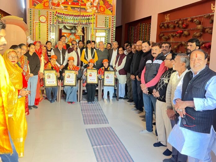 विप्र फाउंडेशन जिला इकाई के तत्वावधान में जोशियों की कुटिया स्थित बालाजी मंदिर प्रांगण में महिला सशक्तिकरण और बेटी बचाओ बेटी पढ़ाओ जैसे अभियान को बढ़ावा देने हेतु एक विशेष सम्मान समारोह आयोजित किया गया जिसमें समाज की प्रतिभावान बालिकाओं को सम्मानित किया गया । इस अवसर पर ब्राह्मण समाज की होनहार बालिका जाह्नवी पांडे का राजस्थान सरकार द्वारा पद्माक्षी सम्मान किए जाने पर साथ ही अंशु शर्मा को एमएसी फॉरेंसिक साइंस में प्रथम स्थान प्राप्त करने पर केंद्रीय मंत्री अर्जुन राम मेघवाल द्वारा गोल्ड मेडल से सम्मानित किए जाने पर व मोनिका पारीक को ई कॉमर्स डिप्लोमा में उत्कृष्ट उपलब्धि प्राप्त करने पर तथा हर्षिता शर्मा को एम.एस.सी.जूलॉजी में श्री राधेरश्याम मोरारका कालेज में टॉपर जैसी उत्कृष्ट उपलब्धि के लिए विप्र फाउंडेशन द्वारा इनका वि फा की कैप, दुपट्टा, माला और गोल्ड मेडल पहनाकर स्वागत सम्मान कर के अभिनंदन पत्र भेंट किया गया। कार्यक्रम व विफा के जिला संयोजक उमाशंकर महमिया ने जानकारी देते हुए बताया कि कार्यक्रम की अध्यक्षता विफा के जिलाध्यक्ष कमलकांत शर्मा ने की व विशिष्ट अतिथि के रूप में संरक्षक राजेंद्र जोशी और नरेन्द्र व्यास उपस्थित रहे। जिलाअध्यक्ष कमलकांत शर्मा ने कहा कि इस प्रकार के कार्यक्रम समाज में बेटियों को शिक्षा के प्रति प्रोत्साहित करते हैं और महिला सशक्तिकरण को नई दिशा प्रदान करते हैं । विप्र फाउंडेशन बालिका शिक्षा के प्रति संकल्पबद्ध है ।कार्यक्रम का संचालन जिला संगठन महामंत्री राम गोपाल महमिया ने किया जबकि धन्यवाद राकेश सहल ने किया।इस अवसर पर जिला महामंत्री वशिष्ठ शर्मा, तहसील अध्यक्ष अनिल जोशी ,शहर अध्यक्ष अमित पांडे, विकास पुरोहित, पवन पांडे, एडवोकेट नीरज शर्मा, सुभाष जोशी, एडवोकेट रवि शुक्ला, सुरेश तिवाड़ी, प्रदीप सहल, रमाकांत पुरोहित, गोपी पुरोहित, रामगोपाल सहल, सुनील शर्मा बीरमीवाला, श्याम निर्मल, अमृतलाल जोशी, रतनलाल जोशी, अशोक जोशी, ओमप्रकाश पारीक, ओम रतन जोशी , पुजारी शिव प्रकाश जोशी, प्रमोद चोटिया, अनिल जोटिया, चंद्रप्रकाश जोशी, नीतू जोशी, मंजू जोशी, ज्योति शर्मा, किरण शर्मा, निकिता शर्मा, सोनल पांडे, अवनी पांडे, आयुषी शर्मा, अंशु शर्मा। सहित बड़ी संख्या में समाज के गणमान्यजन उपस्थित रहे ।