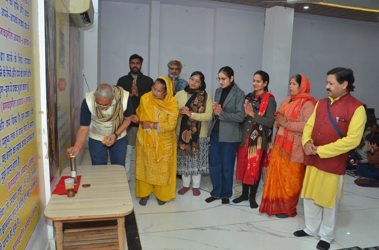 चूरू।गीता के बिना मनुष्य को गति और मुक्ति नहीं मिलती-सिंघानिया स्थानीय भास्कर भवन में सराफ फाउंडेशन की ओर से संचालित गीता क्लासेज में रविवार को बच्चों को गीता बाल प्रश्नोत्तरी के बारे में जानकारी दी गई। कार्यक्रम संयोजक संजय सिंघानिया ने बताया कि अब बच्चों से रोजाना गीता के बारे में संवाद भी किया जाएगा। कार्यक्रम का शुभारम्भ श्याम भोजक, संजू शर्मा, मोहित सिंघानिया ने दीप प्रज्जवलित कर किया। इस दौरान माधुरी शर्मा व ममता शर्मा ने बच्चों को गजल गीत और संकीर्ण का अभ्यास करवाया। आचार्य निरंजन देव ने बच्चों को 12वें अध्याय का अभ्यास करवाया। नन्हीं दृष्टि ने पांच लोग का पाठ करवाया। इस अवसर पर संजय सिंघानिया ने कहा कि गीता के बिना मनुष्य को गति और मुक्ति नहीं मिलती। इस अवसर पर प्रमोद गौड़ व विजय लक्ष्मी ने चोटी रखने पर नकुल, विराट, भरत, सौरभ और रघुनंदन शर्मा को उपहार देकर सम्मानित किया। वैभव प्रजापत का जन्मदिन होने पर उनका भी सम्मान किया गया। प्रमोद गौड तथा निरंजन देव ने हनुमान चालीसा का पाठ किया। इस दौरान रतनगढ़ की पूनम कंदोई ने गीता क्लासेज की सराहना करते हुये सभी का आभार व्यक्त किया।