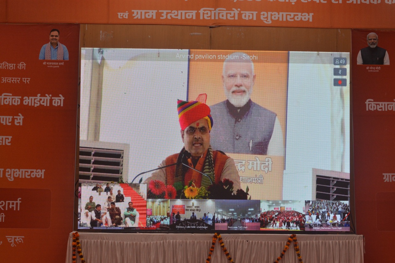 इस अवसर पर जिला मुख्यालय स्थित मातुश्री कमला गोयनका टाउन हॉल में जिला स्तरीय कार्यक्रम आयोजित किया गया। जिला स्तरीय कार्यक्रम सिरोही जिले में आयोजित राज्य स्तरीय समारोह से वीसी के जरिए जुड़ा रहा। जिला स्तरीय कार्यक्रम में चूरू विधायक हरलाल सहारण, जिला कलक्टर अभिषेक सुराणा, सीईओ श्वेता कोचर, बसंत शर्मा सहित जनप्रतिनिधियों, अधिकारियों ने शिरकत की। इस अवसर पर विधायक हरलाल सहारण ने कहा कि प्रदेश की भजनलाल सरकार ने किसानों और श्रमिकों के हित में अनेक महत्वपूर्ण निर्णय लिए हैं। प्रदेश सरकार के किसान हितैषी निर्णयों से उनकी आर्थिक स्थिति सुदृढ़ हुई है तथा किसान अब आत्मनिर्भरता की ओर अग्रसर हो रहे हैं। प्रदेश में दो वर्षों में एक भी भर्ती परीक्षा में पेपरलीक नहीं होने से युवाओं का भविष्य सुरक्षित हुआ है। उन्होंने कहा कि हमारी सरकार गरीब को गणेश मानकर सेवा कर रही है। प्रधानमंत्री नरेंद्र मोदी ने पीएम आवास योजना से गरीब को छत देने का काम किया है। वहीं मुख्यमंत्री किसान सम्मान निधि के माध्यम से मुख्यमंत्री भजनलाल शर्मा ने किसानों को संबल प्रदान किया है। जिला कलक्टर अभिषेक सुराणा ने बताया कि जिले में शुक्रवार, 23 जनवरी से गिरदावर सर्किल पर ग्राम उत्थान शिविर आयोजित किए जाएंगे। इन शिविरों में 12 विभागों की सेवाएं आमजन को मिलेंगी और आमजन की समस्याओं का मौके पर समाधान सुनिश्चित किया जाएगा। आमजन अधिक से अधिक संख्या में इन शिविरों में भागीदारी निभाएं और योजनाओं का लाभ लें। बसंत शर्मा ने कहा कि प्रदेश की डबल इंजन सरकार ने विगत दो वर्षों में किसान, श्रमिक एवं समाज के प्रत्येक वर्ग के हितों का संरक्षण करते हुए जनकल्याणकारी योजनाओं का सफल संचालन किया है। सरकार ने युवाओं के सुरक्षित भविष्य के लिए ठोस निर्णय लिए हैं तथा महिलाओं को अधिकार, सम्मान एवं सुरक्षा प्रदान करने की दिशा में अभूतपूर्व कार्य किया है।