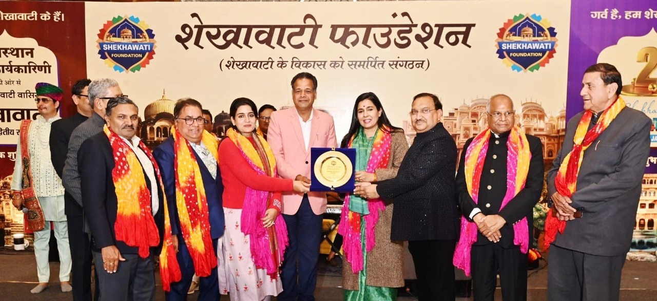 शेखावाटी क्षेत्र के समग्र और सतत विकास के संकल्प को साकार करने हेतु प्रतिबद्ध शेखावाटी फाउंडेशन का द्वितीय स्थापना दिवस समारोह जयपुर में गुरुवार को जयपुर क्लब में रंगारंग सांस्कृतिक कार्यक्रमों के साथ आयोजित किया गया। कार्यक्रम में संजय मुकुंदगढ एवं सीमा मिश्रा द्वारा सुंदर राजस्थानी लोकनृत्य प्रस्तुत किए गए। इस अवसर पर शेखावाटी फाउंडेशन झुंझुनूं जिला इकाई की ओर से झुंझुनूं जिलाध्यक्ष डॉ. दिलीप मोदी, जिला संयोजक डॉ. डीएन तुलस्यान, संरक्षक सत्यदेव दड़िया, रिटायर्ड आईएएस डॉ. मनोज गर्ग, उपाध्यक्ष कुरड़ाराम धींवा, नरेंद्र व्यास एवं डॉ. तहसीन अली कुरैशी की उपस्थिति में झुंझुनूं जिले की तीन विभूतियां सिंघानिया यूनिवर्सिटी के चेयरमैन रवि सिंघानिया को शिक्षा के क्षेत्र में अतुलनीय योगदान के लिए, प्रसिद्ध मूर्तिकार मातूराम कुमावत को मूर्तिकला के क्षेत्र में विश्व में झुंझुनूं के नाम को गौरवान्वित करने के लिए एवं समाजसेवी भामाशाह प्रदीप पाटोदिया सुपुत्र स्वर्गीय चौथमल पाटोदिया का सामाजिक सरोकारों में अनुकरणीय सहयोग प्रदान करने के लिए अतिथियों द्वारा राज्य स्तर पर सम्मान किया गया।