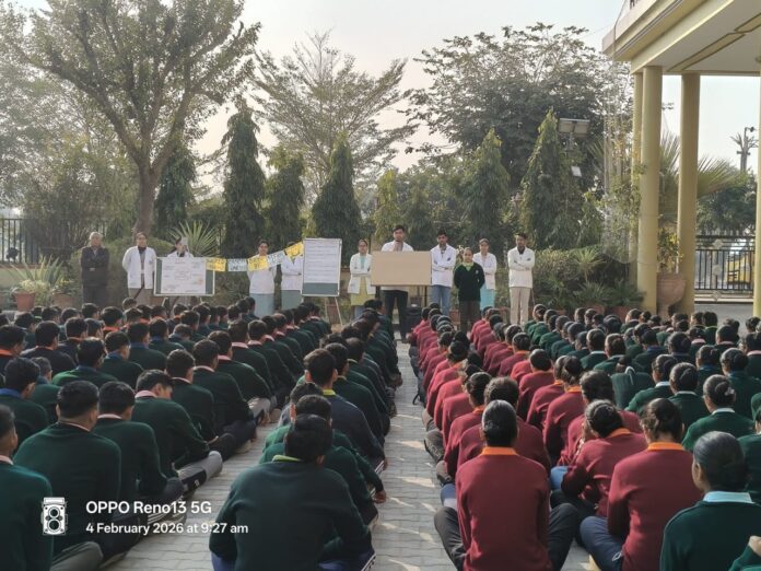 सीकेआरडी मेमोरियल नर्सिंग कॉलेज ढिगाल में बुधवार को विश्व कैंसर दिवस मनाया गया। इस अवसर पर कॉलेज निदेशक डॉ. लालचंद ढाका, अध्यक्षा डॉ. संतोष ढाका, प्रशासनिक अधिकारी दयाराम नेहरा व समस्त शिक्षकगणों की मौजूदगी में कॉलेज निदेशक डॉ. लालचंद ढाका ने कैंसर होने के कारण, उपाय व बचाव के बारे में बताया। साथ ही व्याख्याता जावेद खान ने विश्व कैंसर दिवस थीम यूनाइटेड बाय यूनीक अभियान का पहला वर्ष दुनिया भर में कैंसर देखभाल में असमानताओं को समझने और पहचानने के बारे में अपने विचार रखे। साथ ही छात्रा खुशी ने वर्ल्ड कैंसर डे थीम को पोस्टर के माध्यम से समझाया व छात्रा प्रियंका, आस्था, अमन कुमारी, प्रियंका यादव, अंकिता मील, ऋतु डूडी, छात्र जयंत सैनी, हर्षसिंह शेखावत, अरमान कुमार ने भी अपने विचार रखे। समस्त विद्यार्थियों ने विश्व कैंसर दिवस पर कैंसर को बढ़ावा देने वाले उत्पाद का सेवन न करने और लोगों को जागरूक करने की शपथ ली।
