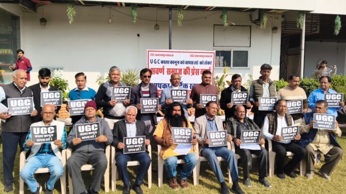 जिले के सवर्ण वर्ग ब्राह्मण, क्षत्रिय, वैश्य एवं जैन समाज द्वारा शहर के पीरूसिंह सर्किल स्थित एक निजी रेस्टोरेंट में आयोजित एक प्रेस वार्ता में यूजीसी कानून के विरोध में बोलते हुए पूर्व विधायक डॉ. मूलसिह शेखावत ने कहा कि सवर्ण समाज माननीय सर्वोच्च न्यायालय के स्थगन आदेश का स्वागत करता है। जिसमें यूजीसी काला कानून पर रोक लगाई और उसे लागू करना सवर्ण समाज के साथ अन्याय बताते हुए फिर से विचार करना आवश्यक समझा। डॉ. मूलसिंह ने कहा कि हम केंद्र सरकार से मांग करते हैं कि वे अपने जवाब में इस काले कानून को वापस लें। भाजपा की केंद्र सरकार जो हिंदू एकता की बात करती है और दूसरी ओर यूजीसी एक्ट के माध्यम से हिंदू समाज को जातियों में बांटकर समाज में नफरत का बीज बो रहे हैं। जिसका भविष्य में परिणाम अत्यंत घातक साबित होगा। यह सवर्ण समाज के विद्यार्थियों के भविष्य के साथ खिलवाड़ है। जिसे हम बर्दाश्त नहीं करेंगे। सवर्ण समाज समन्वयक उमाशंकर महमिया ने कहा कि स्वर्ण समाज ने सदैव सभी वर्गों को साथ में लेकर चलने की व्यवस्था का साथ दिया है। फिर उनके साथ भेदभाव अन्याय है। यूजीसी कानून का दुष्प्रभाव सभी वर्गों पर पड़ेगा। शिक्षा का स्तर गिरेगा। ये आने वाली पीढ़ियों के भविष्य के साथ खिलवाड़ होगा। यूजीसी कानून लागू होने से विश्वविद्यालयों की स्वायतत्ता समाप्त हो जाएगी। शिक्षकों के अधिकारों व विद्यार्थियों की स्वतंत्रता पर कुठाराघात होगा व आपस में वैमनस्यता का बीज अंकुरित होगा। जिससे सवर्ण समाज के शिक्षकों व विद्यार्थियों में भय का वातावरण बनेगा। इसके दुष्प्रभाव से सवर्ण समाज के शिक्षकों के अध्यापन कार्य बाधित होंगे और विद्यार्थी शिक्षा से वंचित रहेंगे। वैश्य समाज जिलाध्यक्ष नरेश परसरामपुरिया ने कहा कि यह सामाजिक न्याय की मूल भावना पर सीधा हमला है। यूजीसी कानून लोकतांत्रिक व्यवस्था पर सीधा प्रहार है। जिससे शिक्षा का स्तर गिरता चला जाएगा। सरकारी संस्थाओं को कमजोर कर निजी विश्वविद्यालयों को सीधा लाभ पहुंचाने का कार्य किया जा रहा है। सनातन भारत संघ अध्यक्ष मनोहरसिंह घोड़ीवारा ने कहा कि यूजीसी एक्ट लागू कर सवर्ण समाज को हीन बनाकर उन्हें डराने, शिक्षा और रोजगार से वंचित करने का कुत्सित प्रयास व षड़यंत्र किया जा रहा है। सवर्ण समाज इसके विरोध में सड़क पर उतरकर विरोध प्रदर्शन के लिए बाध्य है। इस अवसर पर विप्र फाउंडेशन संरक्षक राजेंद्र जोशी, गौड़ समाज के कार्यकारी जिलाध्यक्ष प्रदीप शर्मा अलसीसर, विप्र फाउंडेशन संरक्षक एडवोकेट सुशील जोशी, विप्र फाउंडेशन संगठन महामंत्री रामगोपाल महमिया, विप्र फाउंडेशन जिला महामंत्री वशिष्ठ शर्मा, रविंद्रसिंह तोलियासर, पुजारी महासंघ के जिलाध्यक्ष वि